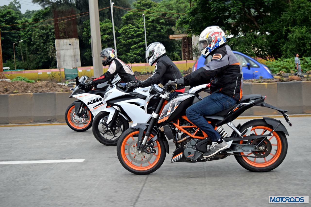 The RC will give you lessons in telepathy and every positive input from the rider will return in a reward that will bring about a wide grin inside the lid. The suspension didn’t feel bone breaking hard but surprisingly absorbed undulations on the tarmac quite well by sports bike standards. Braking hard and then getting back on the throttle doesn’t make the RC pitch as much as the Duke 390, and at any given point of time, it is the RC 390 which will instill more confidence on the limit in comparison to the Duke. In everyday traffic, it is the Duke which comes out trumps as it has a shorter turning radius, upright seating position and a wider handlebar.
