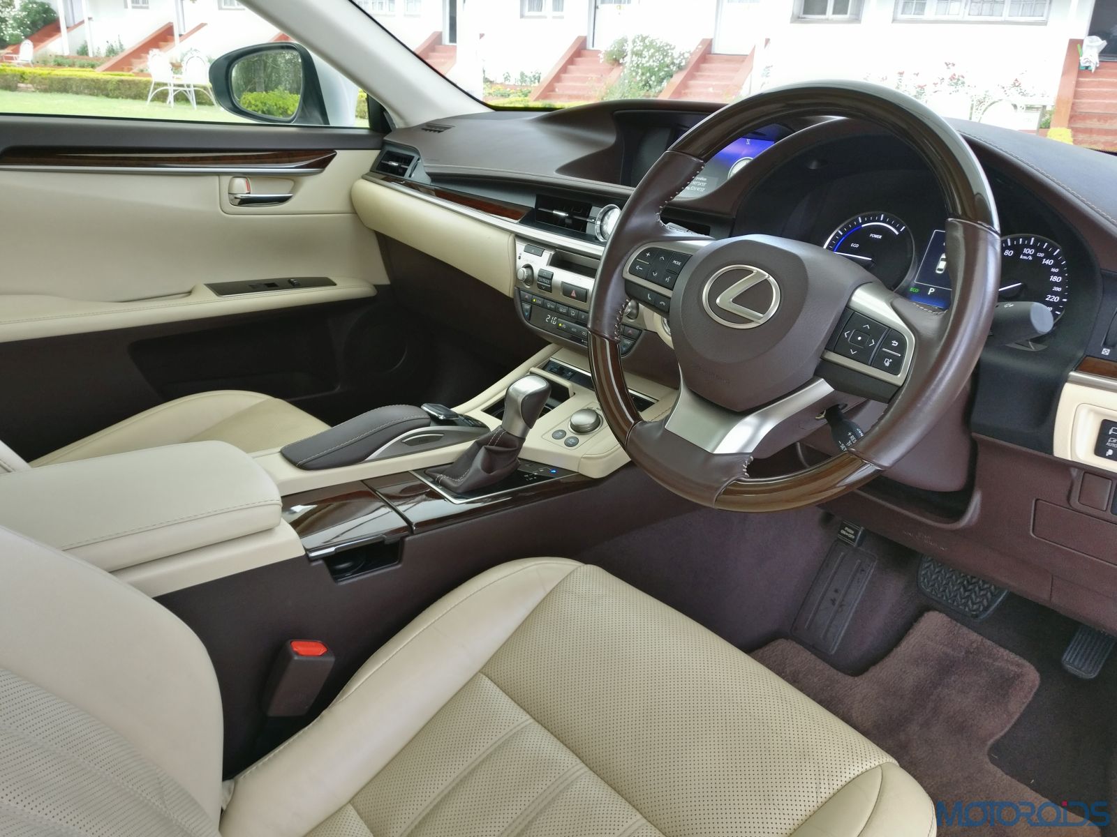 One sits sort of low inside the Lexus ES’ cabin. However, the low set, horizontal dashboard brings width into the picture. The steering wheel has been wrapped in fine leather and wood, while the seats are superbly padded, get inbuilt ventilation and are accommodating.