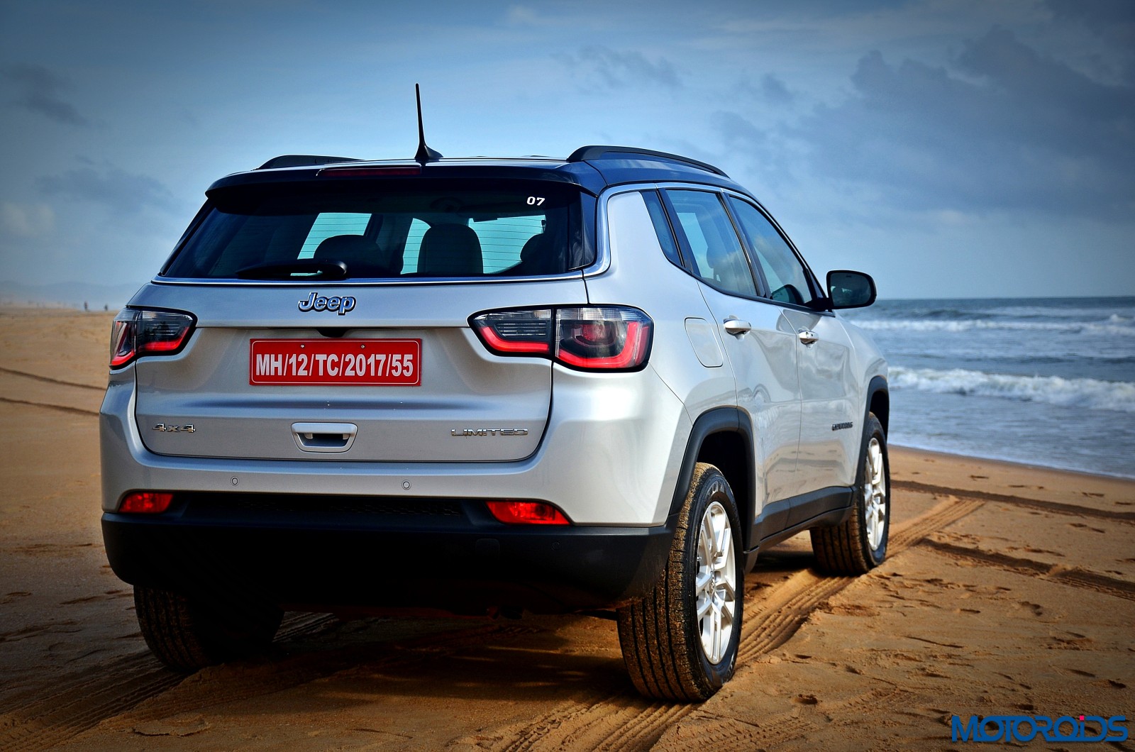 The rear tailgate gets a high set glass area which is capped by a roof spoiler. A licence plate sits in the correct position rather than being somewhere at the bottom, and along with those LED taillights, makes the Compass look dense and tightly packaged when looked at from the rear.