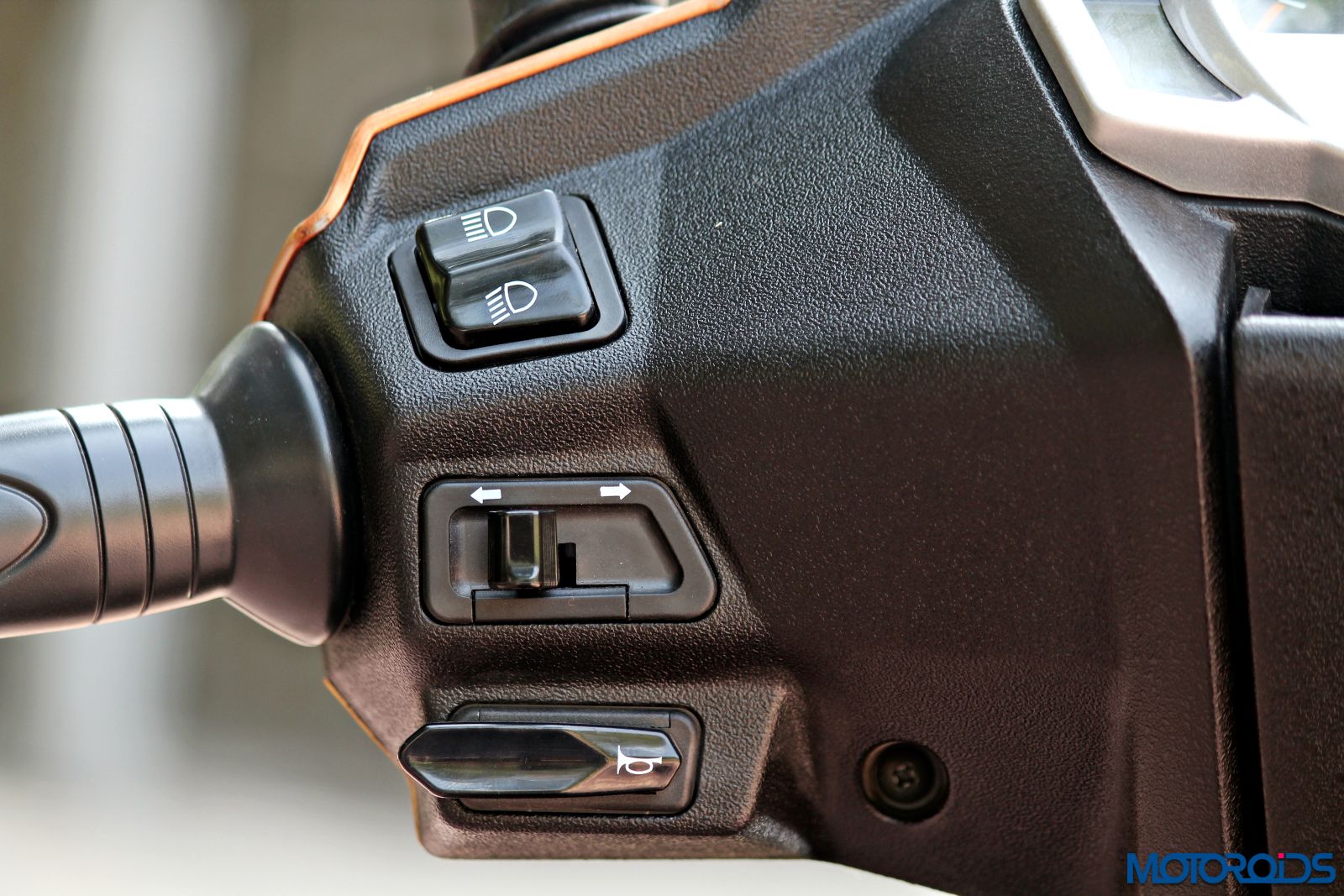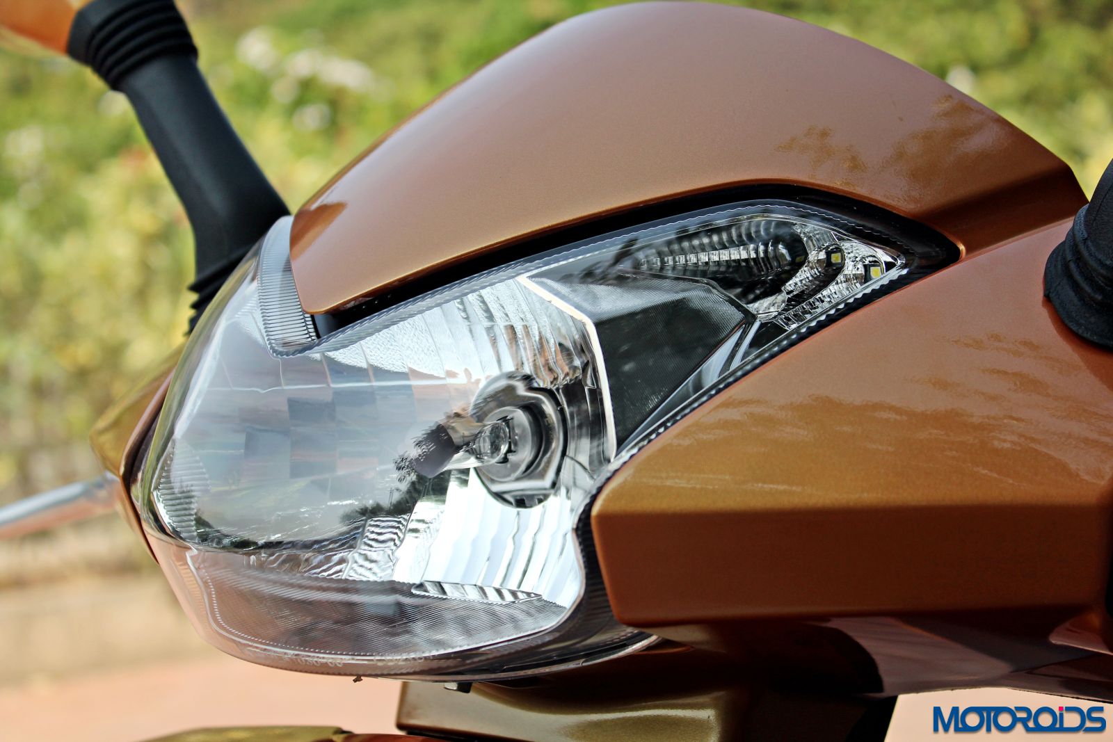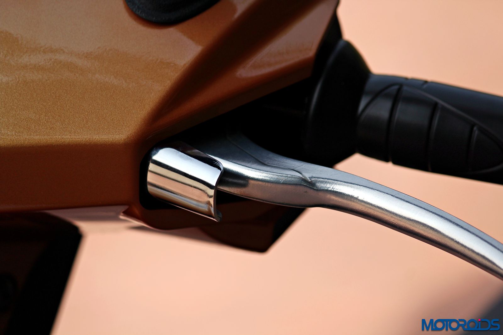 As mentioned before, the mirrors have been draped in body colour on this one, through the shape remains unchanged. As the eyes stray slightly below the mirrors, you can see newly chrome finished bar-end weights and alloy brake levers, which may or may not be liked by the buyers – in my case, I would have liked them to be a bit more subtle. Black painted units would have gone well with the overall design and looked sophisticated.