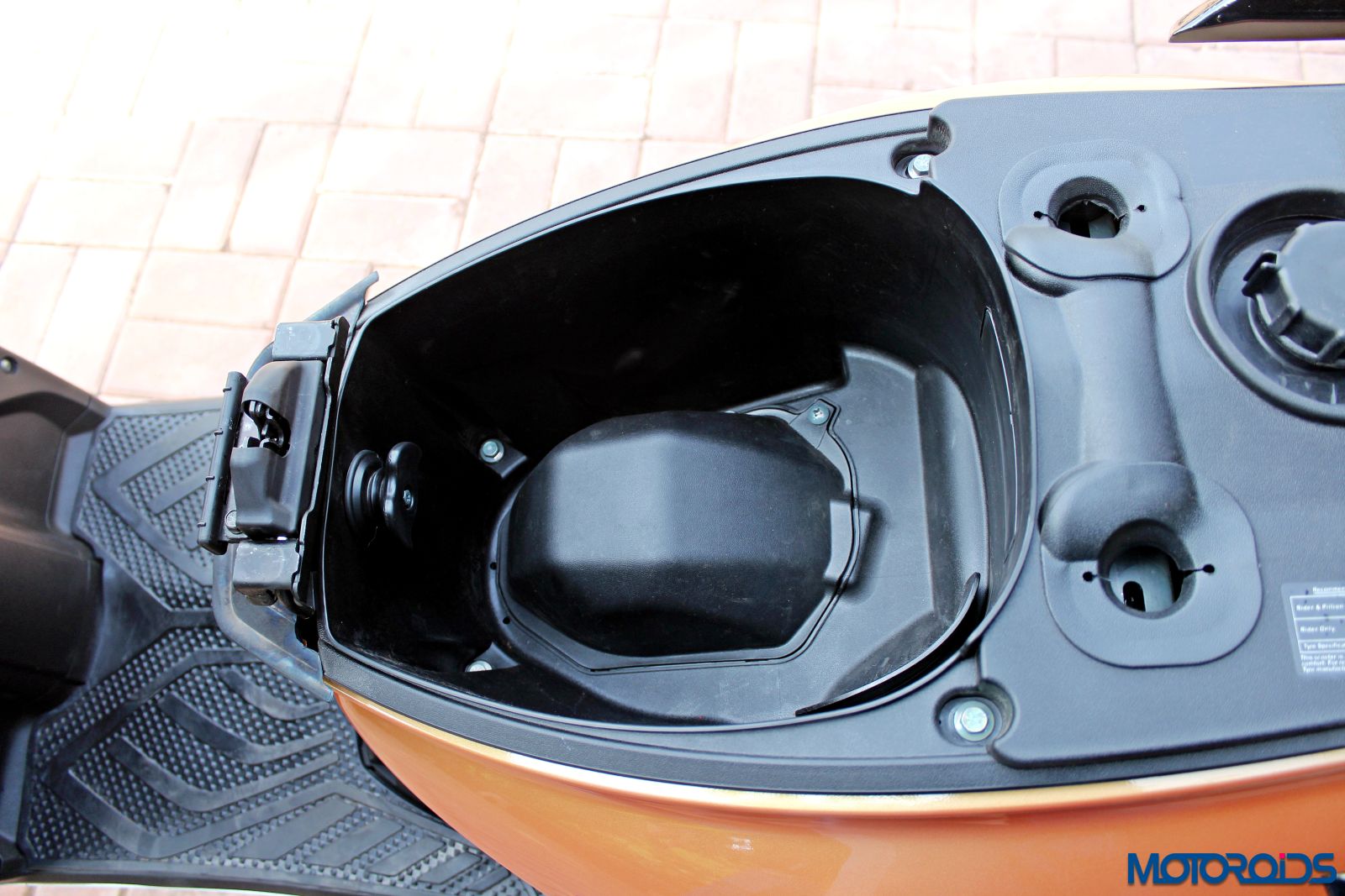 The under seat storage isn’t too great and is insufficient to accommodate a full face helmet. However, storing a open face helmet or a small handbag should not be much difficult.