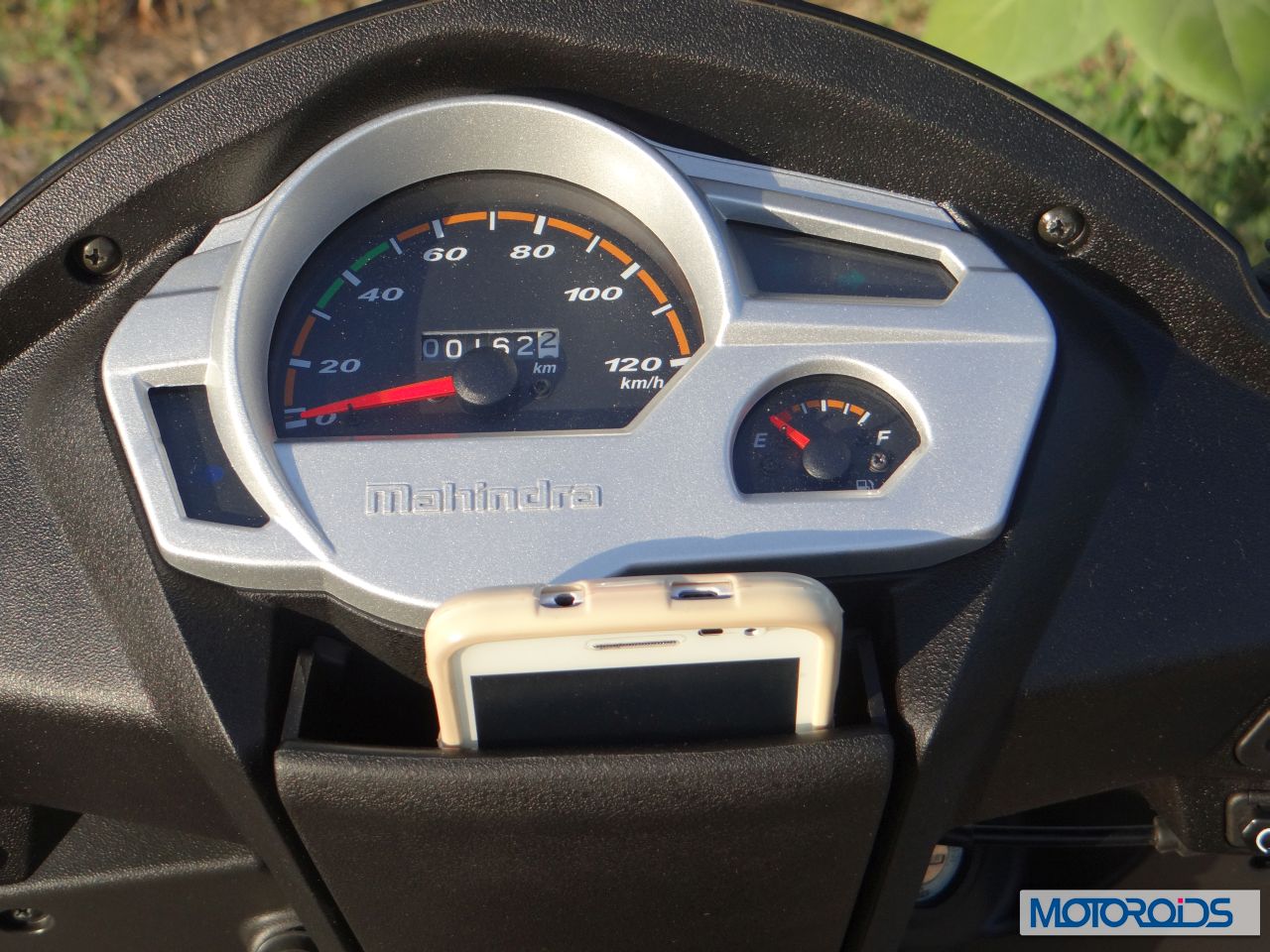 The instrument cluster is an all analogue unit with silver housing. Behind the instrument cluster is a quick access storage space which can be used to store mobile phones, sunglasses or some money.