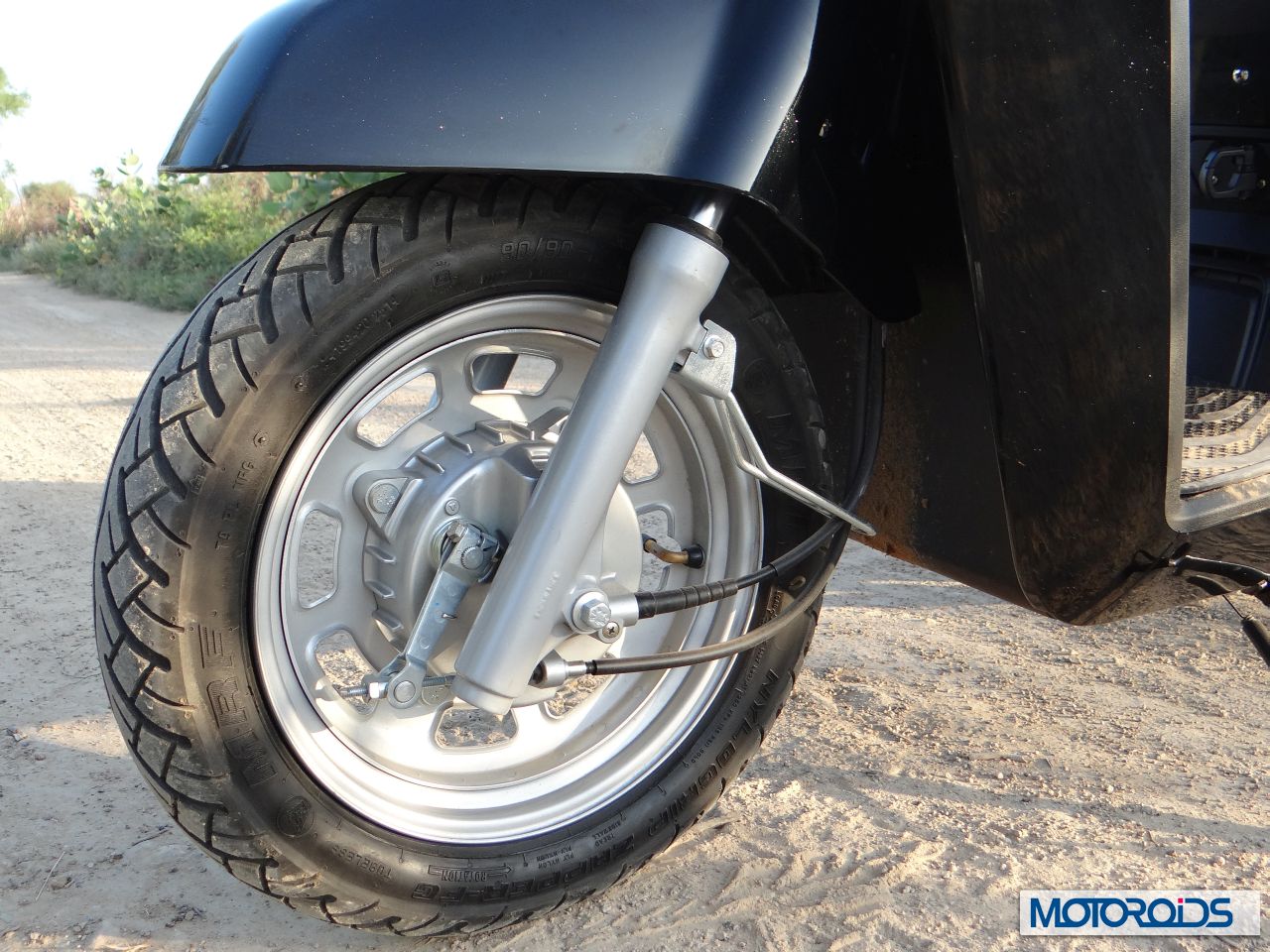 The 12-inch tyres along with MRF Tyres provide good road surface grip while the suspension take care of the bumps with ease