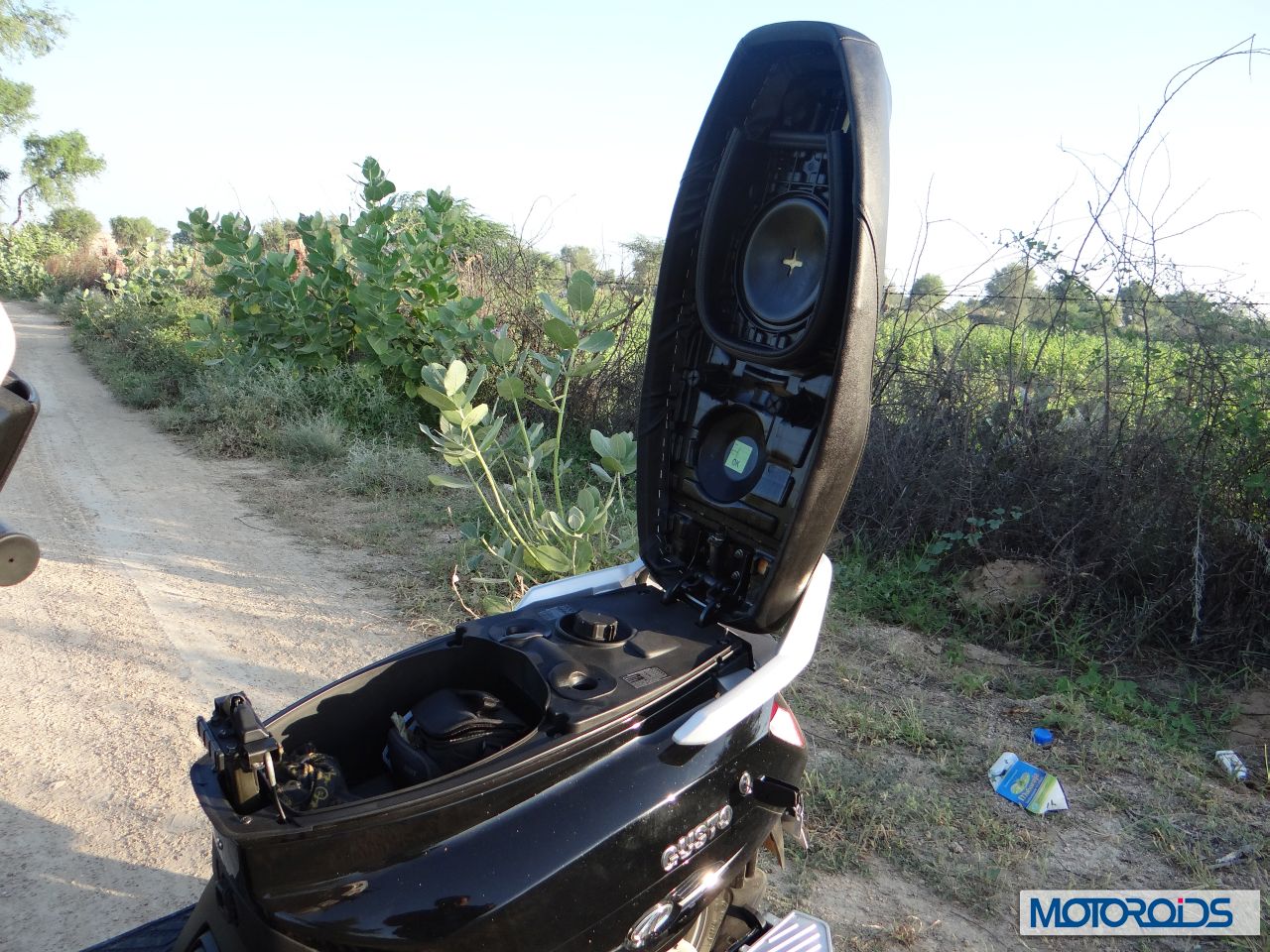 The seat open on the backside and gets locked at full open position which helps in easy access of the storage space
