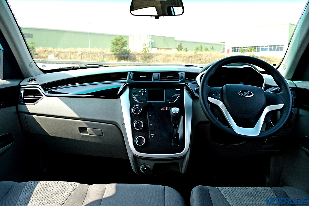 The KUV100’s interiors are a nice place to be in. It’s quite spacious and airy, given the slightly larger volume it displaces as compared to its hatchback brethren. The dashboard design is quite contemporary, while the ambience is set by acres of piano black trim contrasted with a light beige colour scheme. Dull silver and matte black inserts juxtaposed with each other add to the palette.