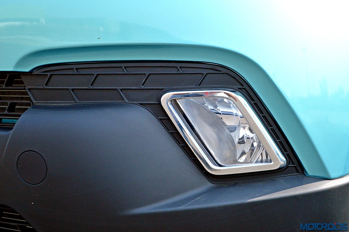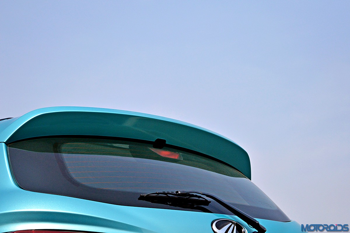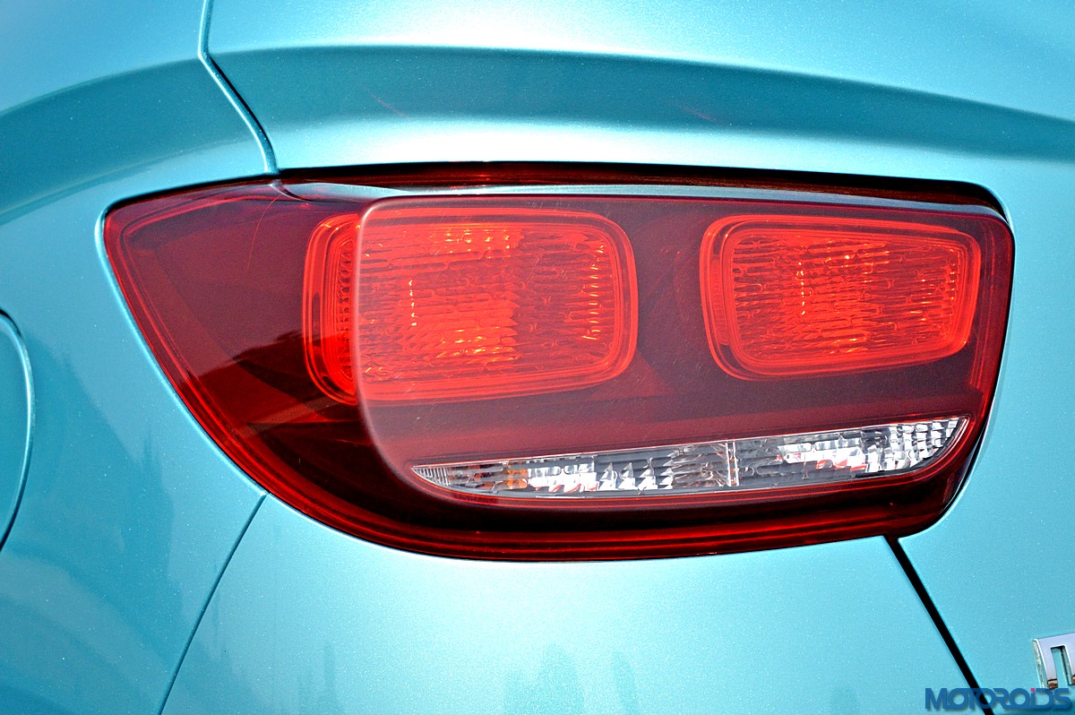 The flush fitting rear bumper has been effectively designed to keep overall vehicle length less than 4 meters. The bumper also features a black plastic trim running across, which hosts the registration plate recess flanked by chrome bordered, trapezoidal dual fog lamps – a first in class feature.