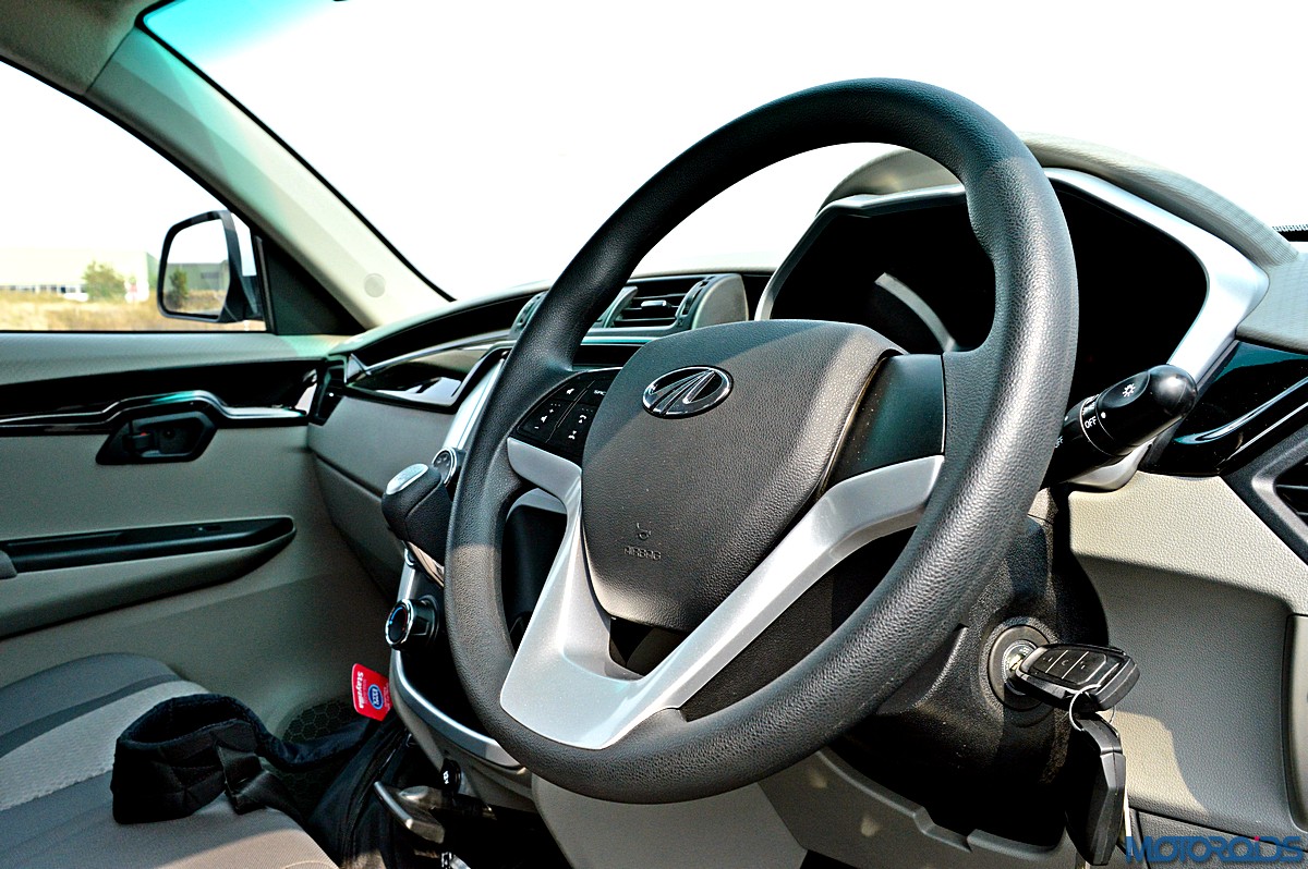 The integrated infotainment system with a 3.5-inch display is compatible with Mahindra’s new BLUESENSE app, via which one can control features of the infotainment system as well as see information related to climate control, TPMS (Tyre Pressure Monitoring System), fuel statistics, etc. However, there is no touch-screen feature here. Sound quality from the 6 speakers is good, but not a patch on, say, the Tata Zica’s 8-speaker job.