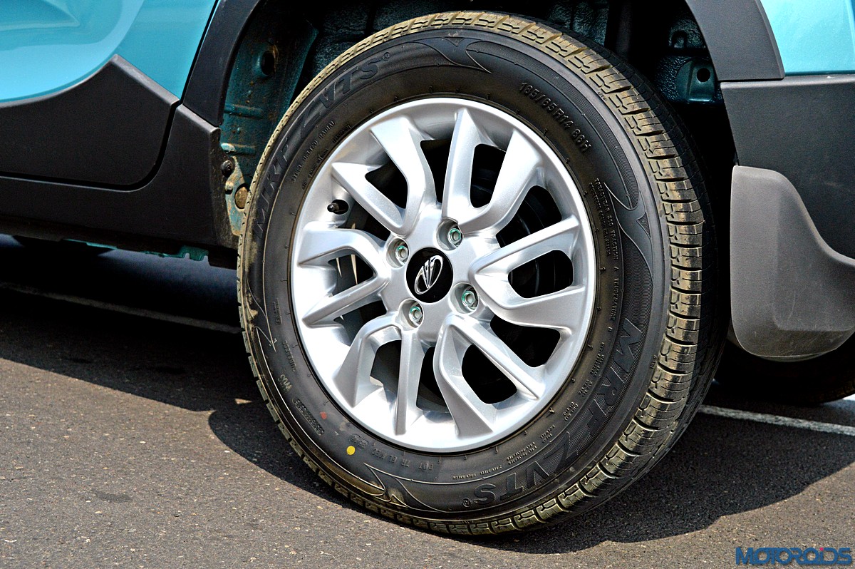 The top-end K8 trim level of the KUV100 will be shod with 185/65R14 tubeless footwear with 12-spoke alloy wheels.