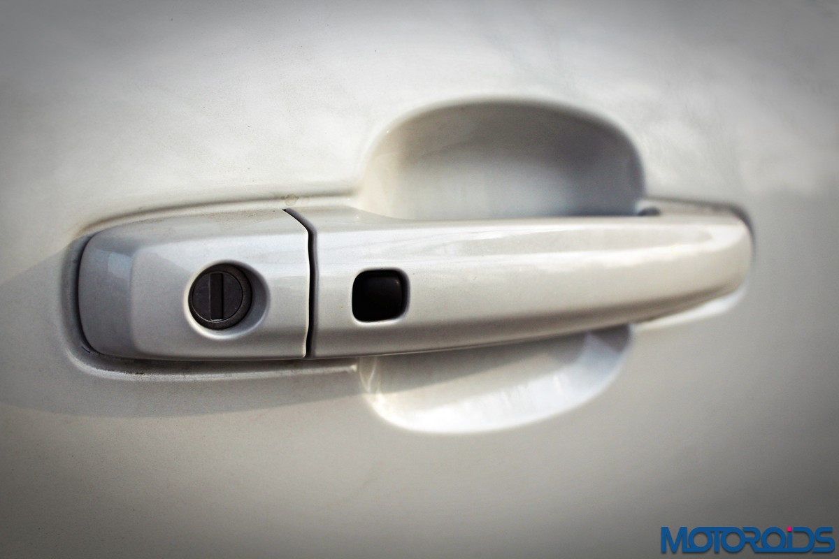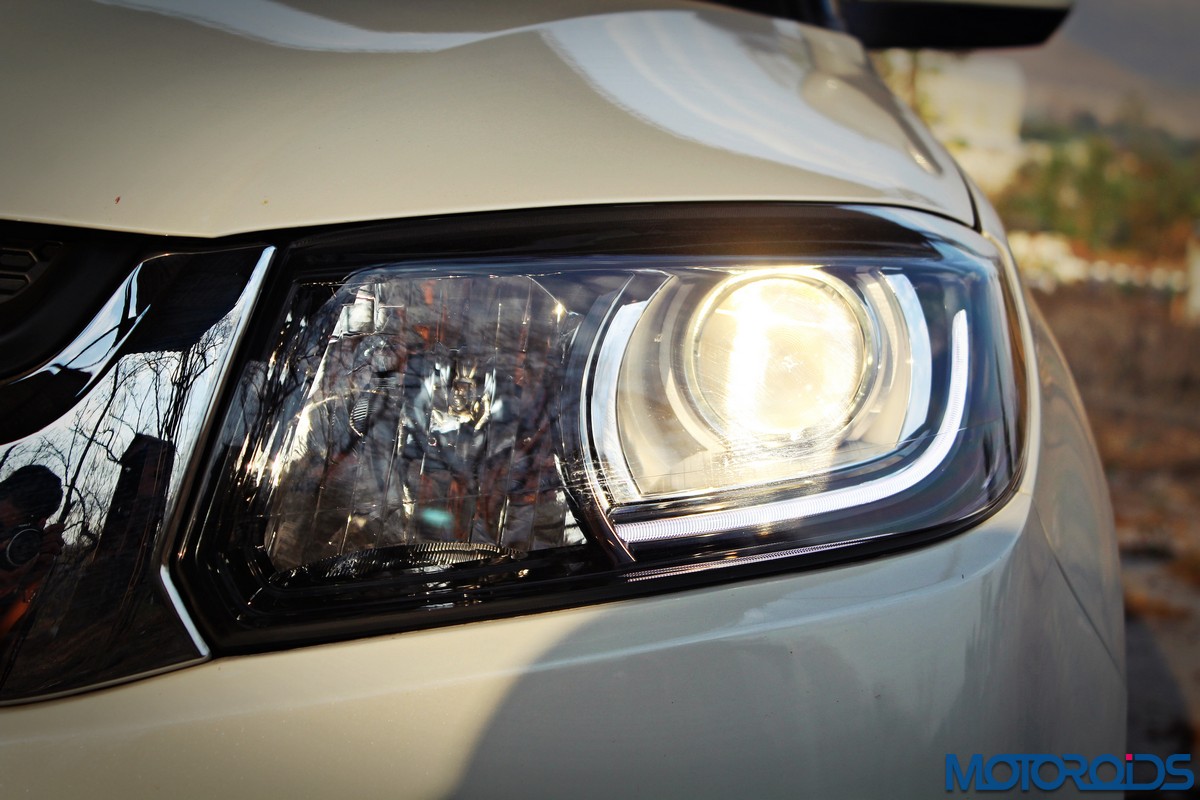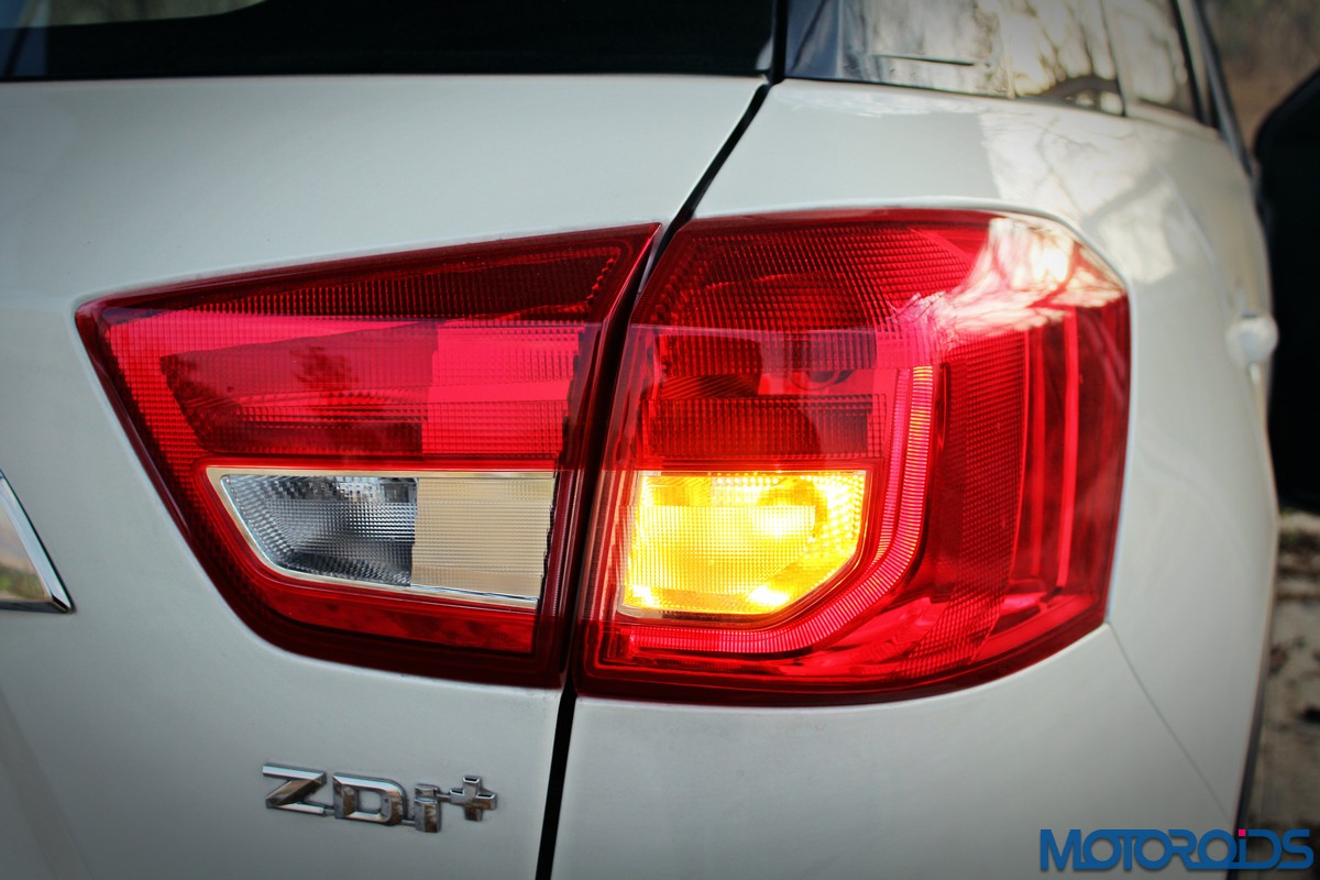 Straightaway, the contrasting colored roof and mirror caps strike the eye. Available only as paid option on the highest variant, this visual feature accentuates the ‘floating roof’ design, and really makes the Vitara stand out – after all, the vehicle is primarily targeted at the ‘young and fashionable’. Too bad our test car didn’t have that option, but even in plain-jane white, one of India’s most popular car color choices, the Brezza looked the part.