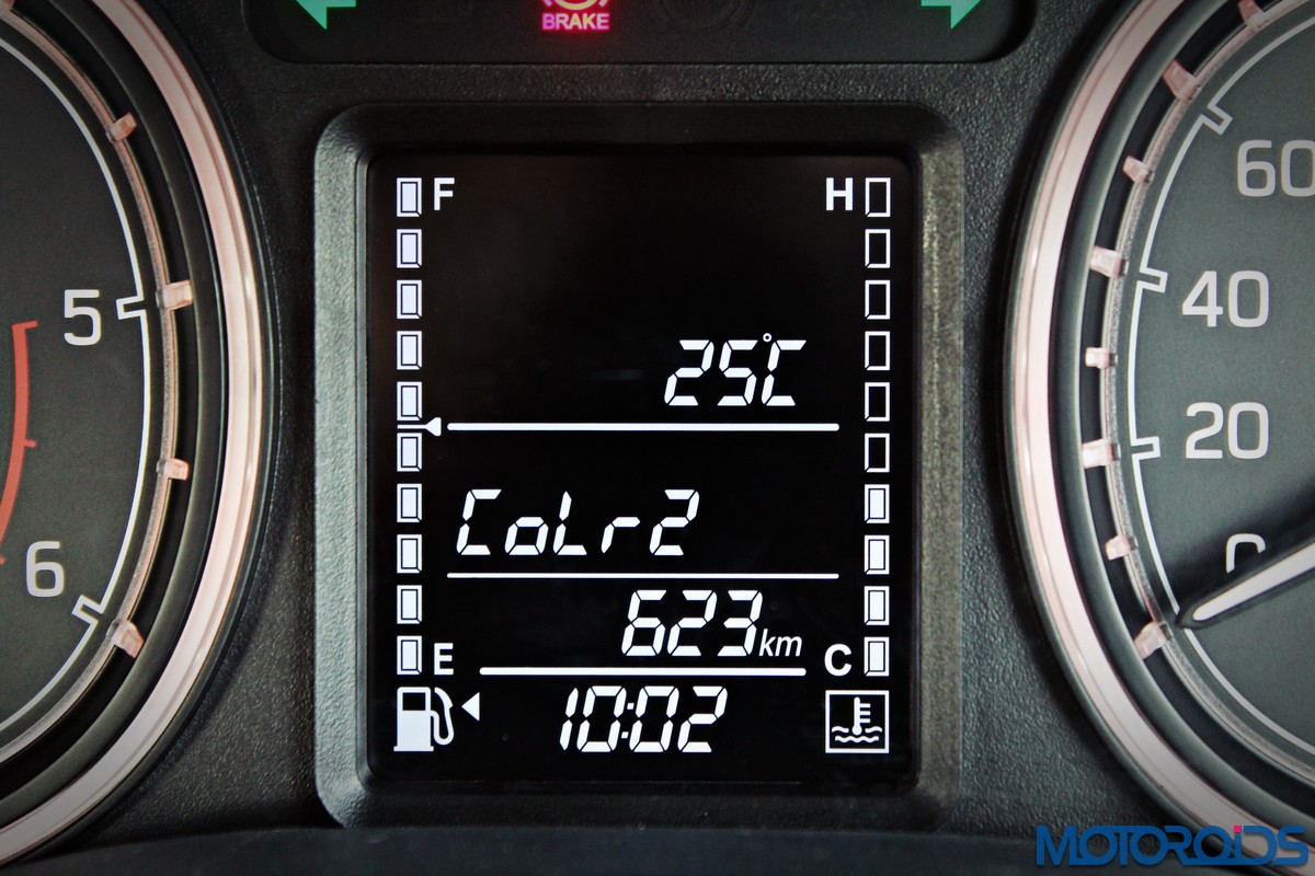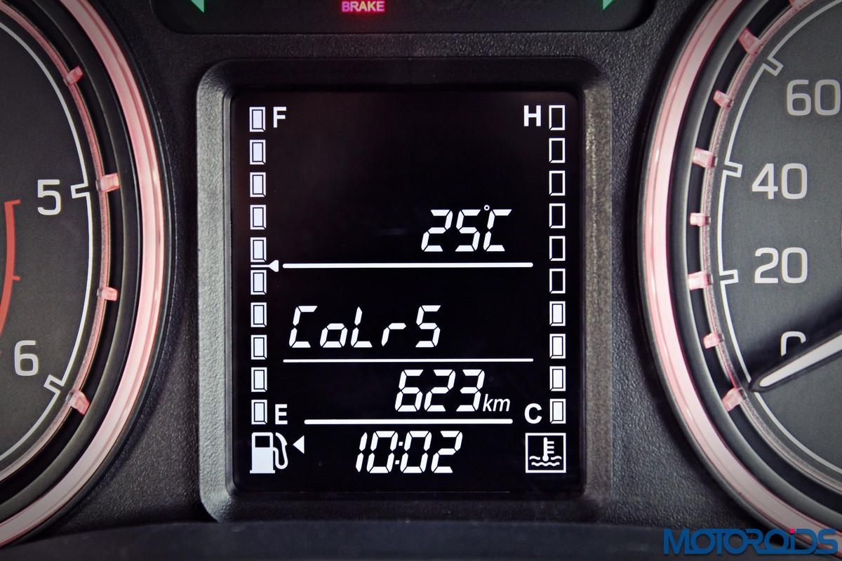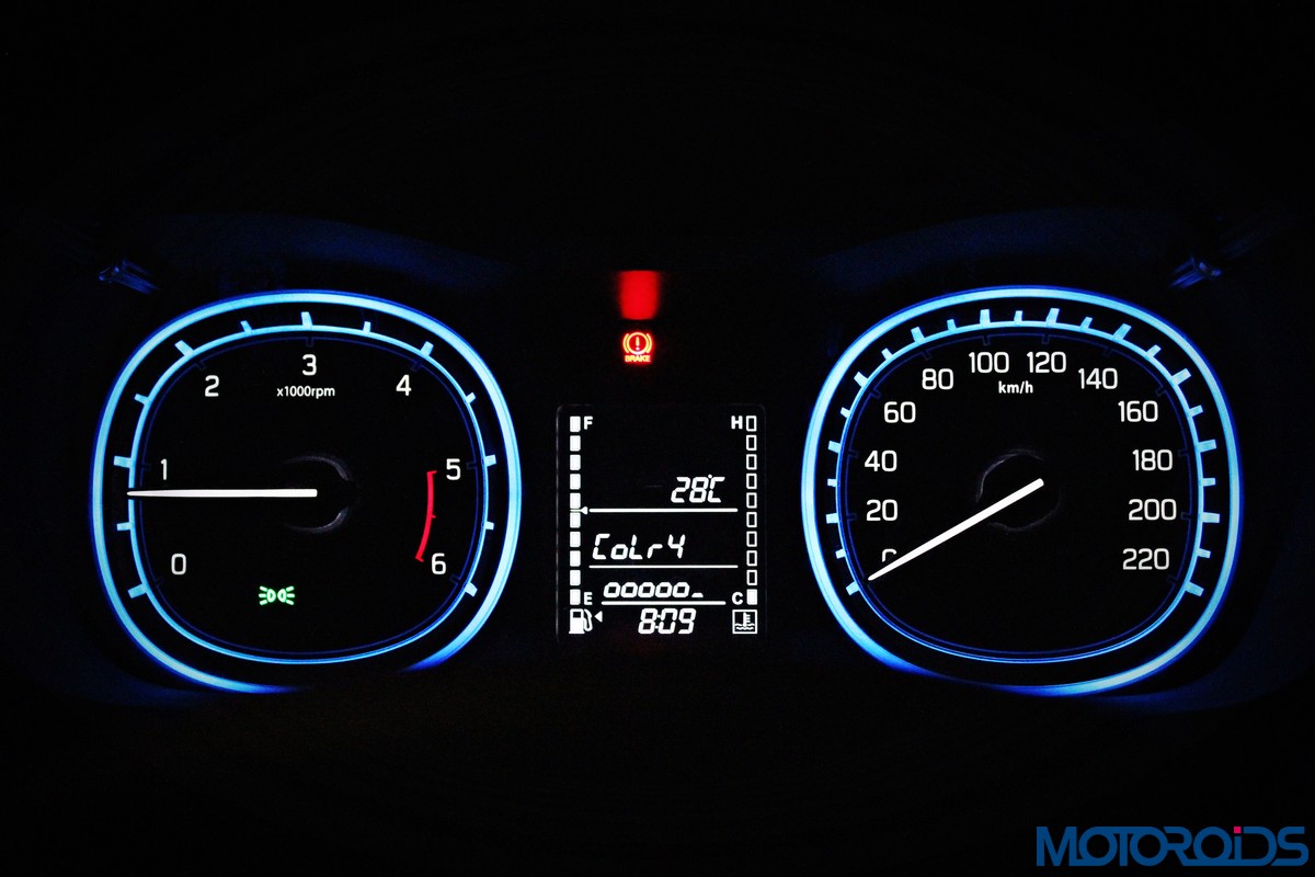 The only funk in the dashboard comes in the form of the instrument cluster. It’s unique, slightly squared off dials can be illuminated in 5 different colour options. These ‘mood lights’ come in blue, white, red, pink, and yellow. While it’s not really a value added feature, it’ll add a bit of spice to the rigmarole of everyday commuting. There’s multi information display with a fairly comprehensive tripcomputer nestled between the dials, with white fonts on a black background.