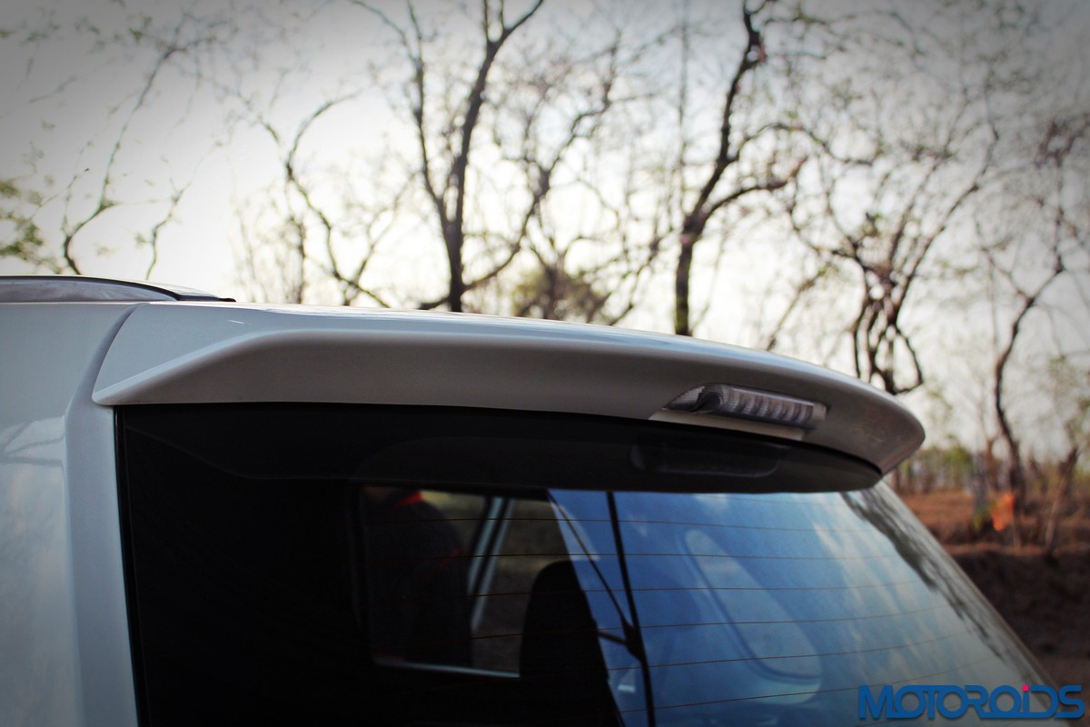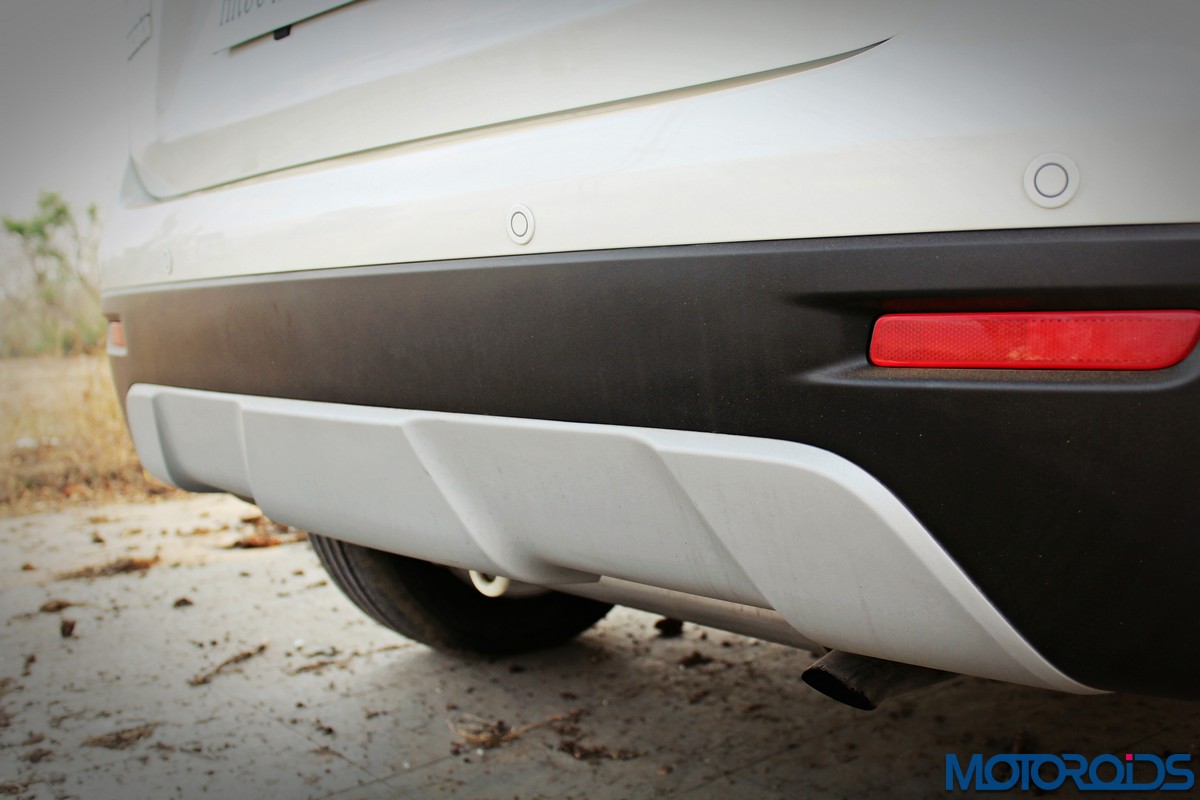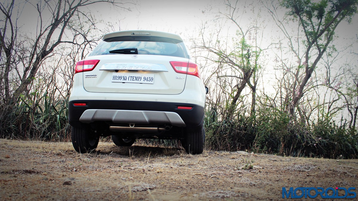At the back, the Vitara employs sharply styled, prominent tail lamps that have their own LED signature; emulating the bull horns from up front. Like the rest of the design, there isn’t anything radical going on at the back, yet it looks pleasing. The dual tone rear bumper with a faux skid plate exposes the entire exhaust system; some might find this peek-a-boo oddly appealing but I didn’t. Also, the chromed plaque over the registration plate recess comes off as a bit tacky, but like sex, chrome sells.