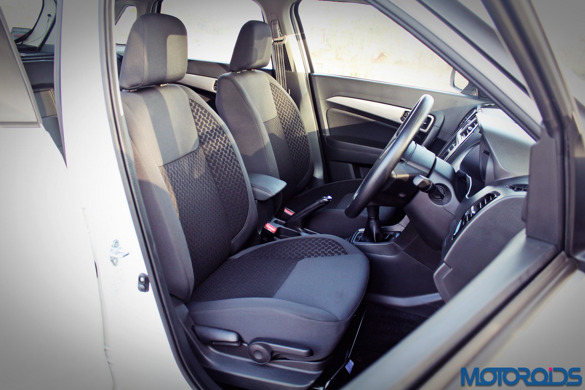 Plastic quality is average, with nice, textured surfaces on the top half of the dashboard, and door trims. However, there were a few visible rough edges, meaning that there is still room for improvement in this department. When it comes to room, the Vitara Brezza is commendably spacious. The relatively voluminous insides offer generous amounts of headroom all around, especially at the back. No wonder it was designed to accommodate occupants with various (at least 18 different) Indian head gears. The familiar steering wheel feels great to hold, and visibility through the large windscreen is also commendable.
