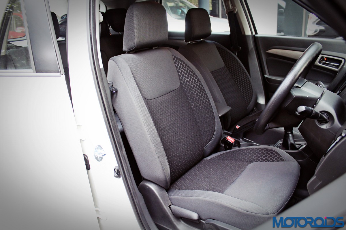 The fairly large display is crisp, and doubles up to show feed for the rear view camera, replete with guidelines. There’s also navigation, which worked without fail during our test run, and of course, easy smartphone connectivity via MirrorLink. Sound quality, though not a patch on, say, Tata’s HARMAN based systems, is pretty decent, with thick bass and good mid-tones. The infotainment system leaves a lot of empty spaces around it on the center console, which is a bit of an eyesore. Below the center console lie the controls for the automatic climate control, which feel nice and tactile to use, apart from lending the only premium touch to the dashboard.