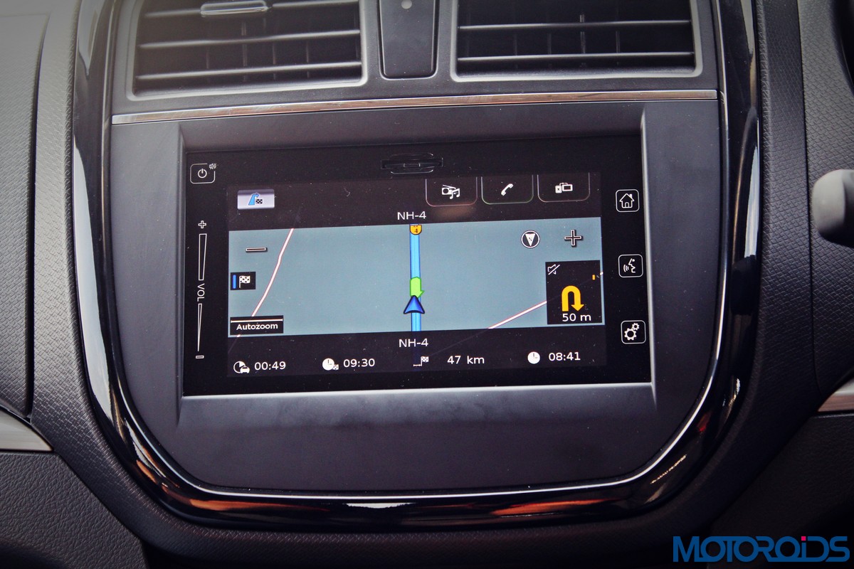 The large, rectangular center console hosts Maruti’s familiar SMARTPLAY system. As far as interfaces go, this is one of the best infotainment systems in the market. Everything relevant is laid out neatly on the home screen, without the need for jazzy graphics or pretentious fonts. Touch sensitivity is nice, and scrolling through the menus and sub-menus is a breeze. What’s more, it even offers Apple’s Car Play feature, and is the very first mass market car in India to do so – a good move as a hefty chunk of the vehicle’s buyers are sure to be brandishing one of late Steve Job’s brainchildren. For the rest, an Android based connectivity feature is in the works as we speak.