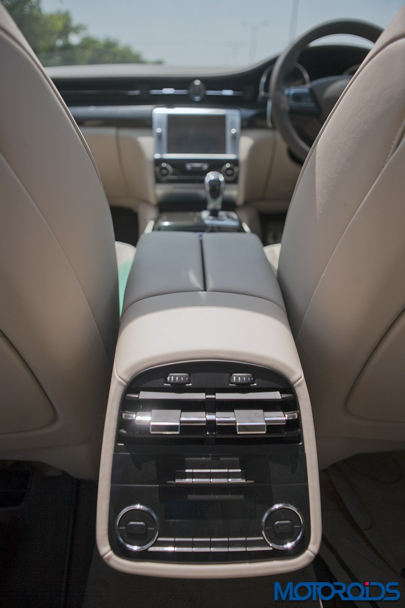 Bring down the arm rest and the seating position gets even snugger. Arm rest gets concealed cup holders and two ports – USB and a 12V port to charge your gadgets. Not only is the leg room ample, the under thigh support is also generous with good lumbar support and head rests which actually aid comfort – unlike some other cars where they’re more of an annoyance sometimes. Motorized shades can be brought on with the pull of a button. Front passenger seat can also be moved forward with the push of a button to enhance the legroom.