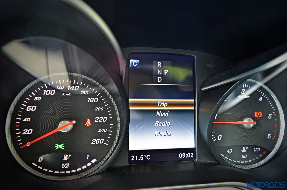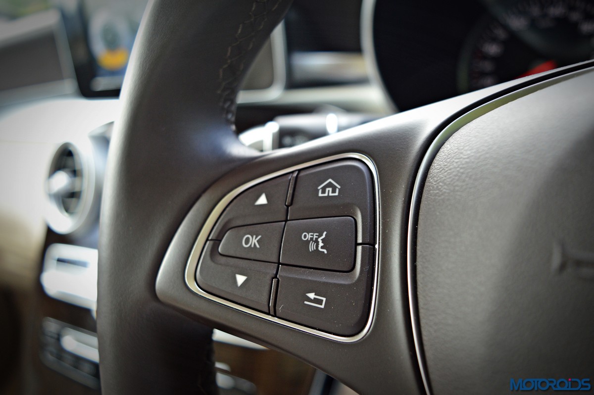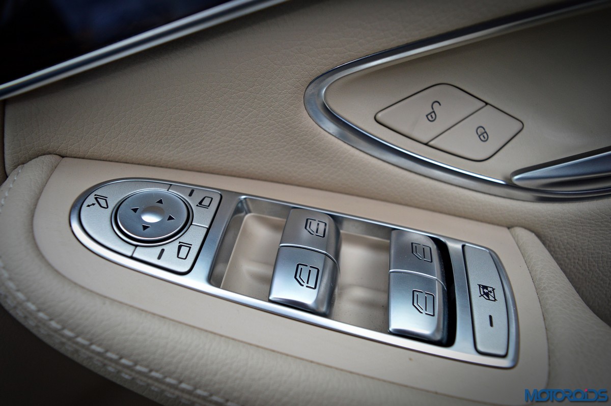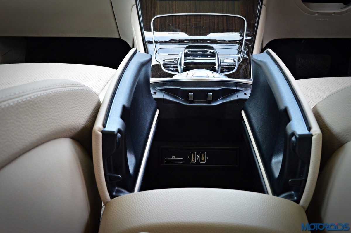 Infotainment duties are handled by Mercedes’ Audio 20 CD multimedia system which is connected to a ‘floating’ 7-inch screen and COMMAND Online. The system is controlled through a newly developed touchpad in the handrest over the rotary push button COMMAND controller that nestles in the centre console. As on a smart phone, this provides for an intuitive operation of all the head-unit functions using finger gestures. The touchpad also permits letters, numbers and special characters to be entered in handwriting – in any language supported by Mercedes’ Audio 20 CD sound system or COMAND Online. Other salient features of the infotainment system include navigation via SD card, MB apps with internet capability, 2 USB ports in the center console and 12 V sockets. Sound quality from the stock speakers is great, but still not a patch on, say, the Burmester system on the S-Class.