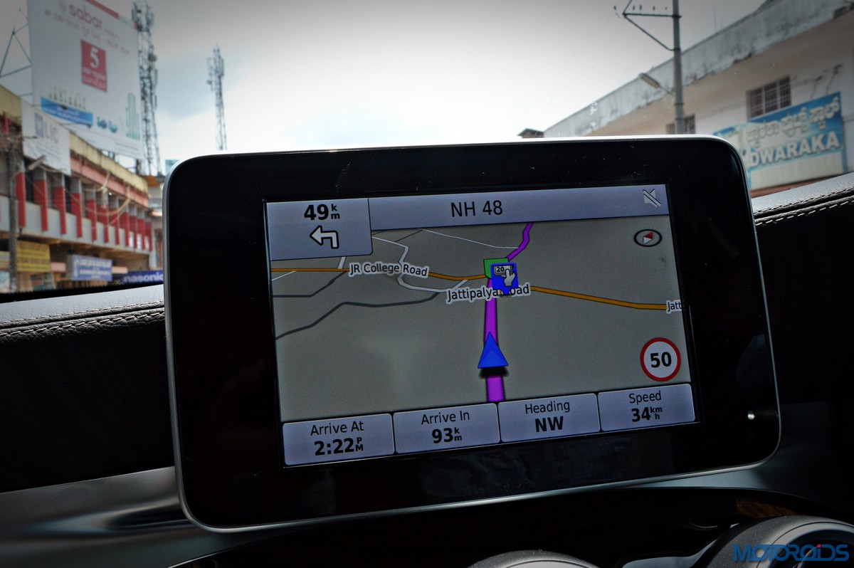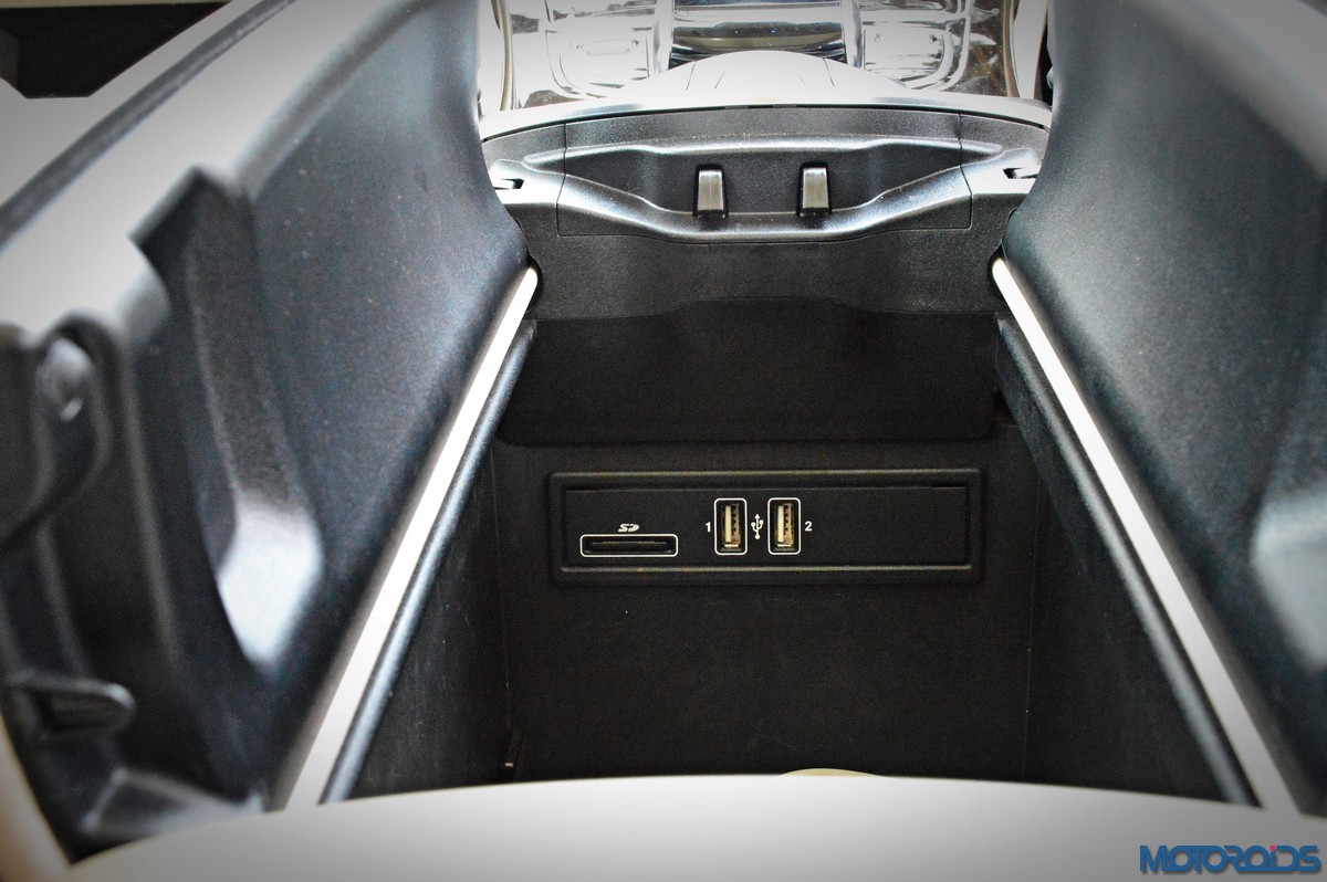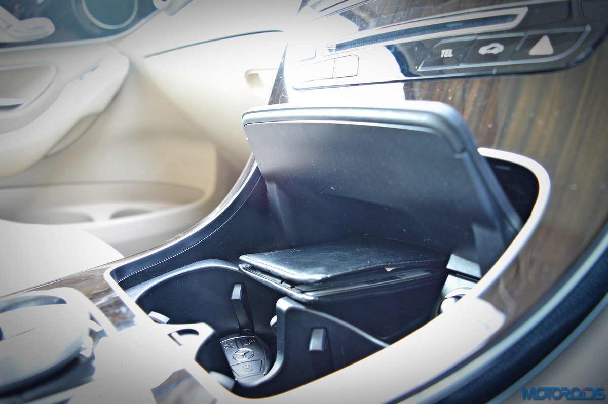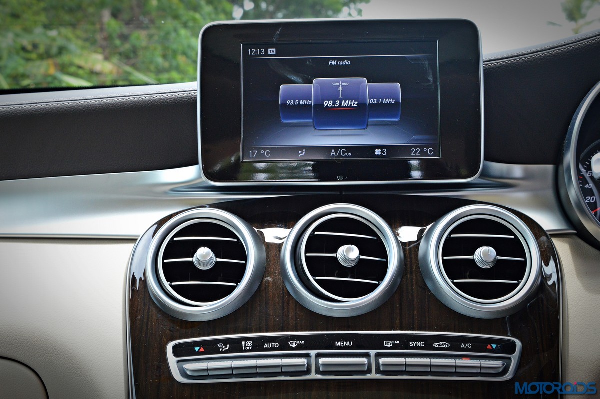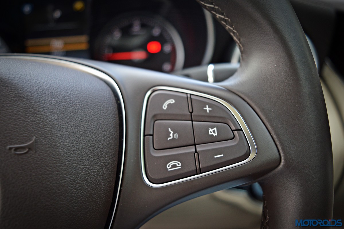 Infotainment duties are handled by Mercedes’ Audio 20 CD multimedia system which is connected to a ‘floating’ 7-inch screen and COMMAND Online. The system is controlled through a newly developed touchpad in the handrest over the rotary push button COMMAND controller that nestles in the centre console. As on a smart phone, this provides for an intuitive operation of all the head-unit functions using finger gestures. The touchpad also permits letters, numbers and special characters to be entered in handwriting – in any language supported by Mercedes’ Audio 20 CD sound system or COMAND Online. Other salient features of the infotainment system include navigation via SD card, MB apps with internet capability, 2 USB ports in the center console and 12 V sockets. Sound quality from the stock speakers is great, but still not a patch on, say, the Burmester system on the S-Class.