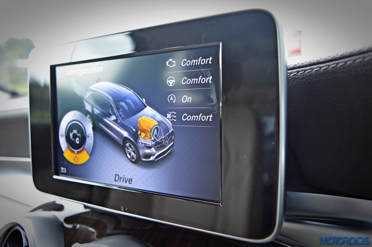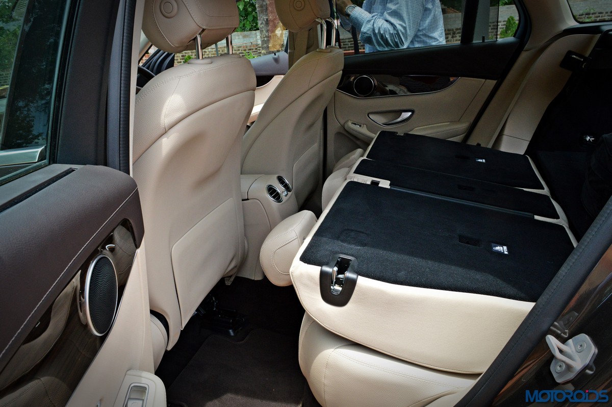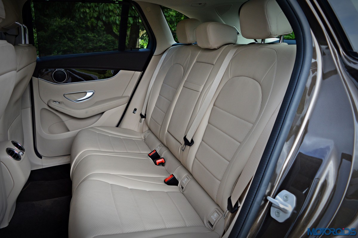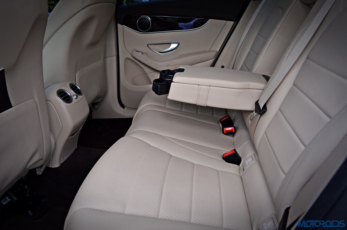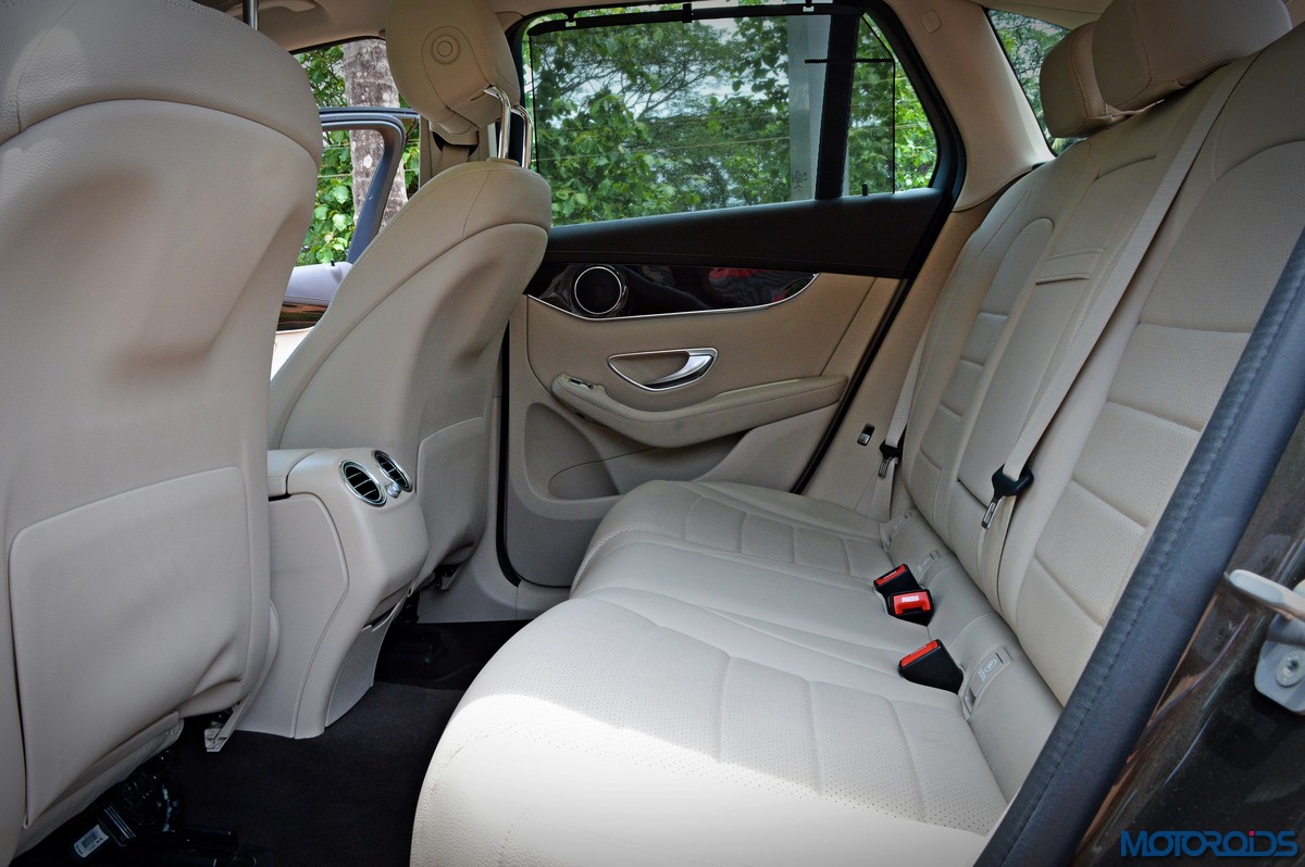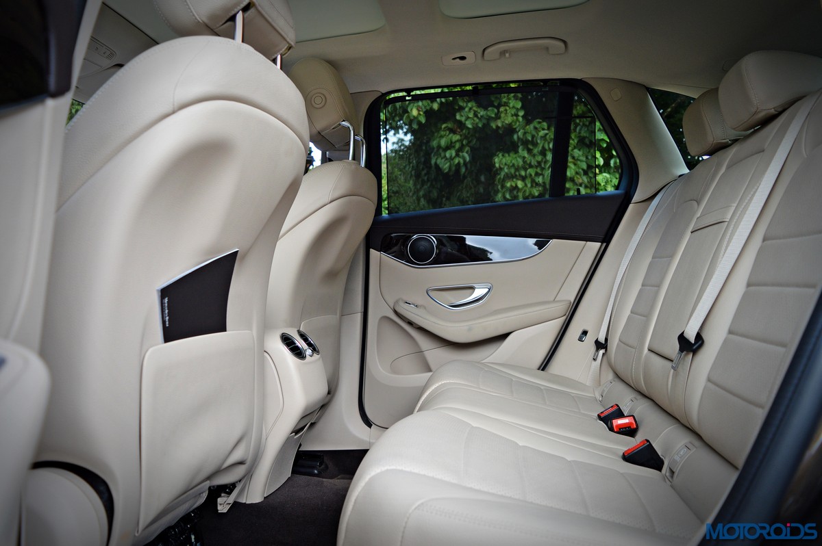 You sit higher up than you do in the C-Class, which befits an SUV’s seating position, and get a commanding view of the road ahead. Finding your desired seating position is just a few taps on the ergonomically placed buttons on the door that electronically adjust the front seats with 4-way lumbar support. The seats themselves are immensely comfortable; with perforated leather upholstery and substantial bolstering that cosset you. The rear bench features a 40/20/40 split, apart from including a collapsible arm-rest with integrated cup holders in its midst. Space and comfort at the back, especially headroom, is significantly more than the C-Class, while 57 mm more rear leg room, along with 28 mm more rear shoulder room is now available as compared to the erstwhile GLK.