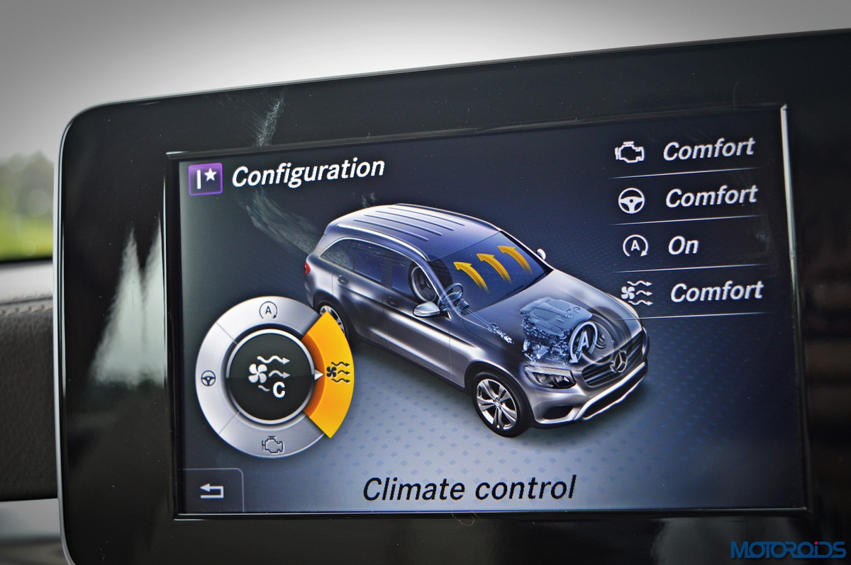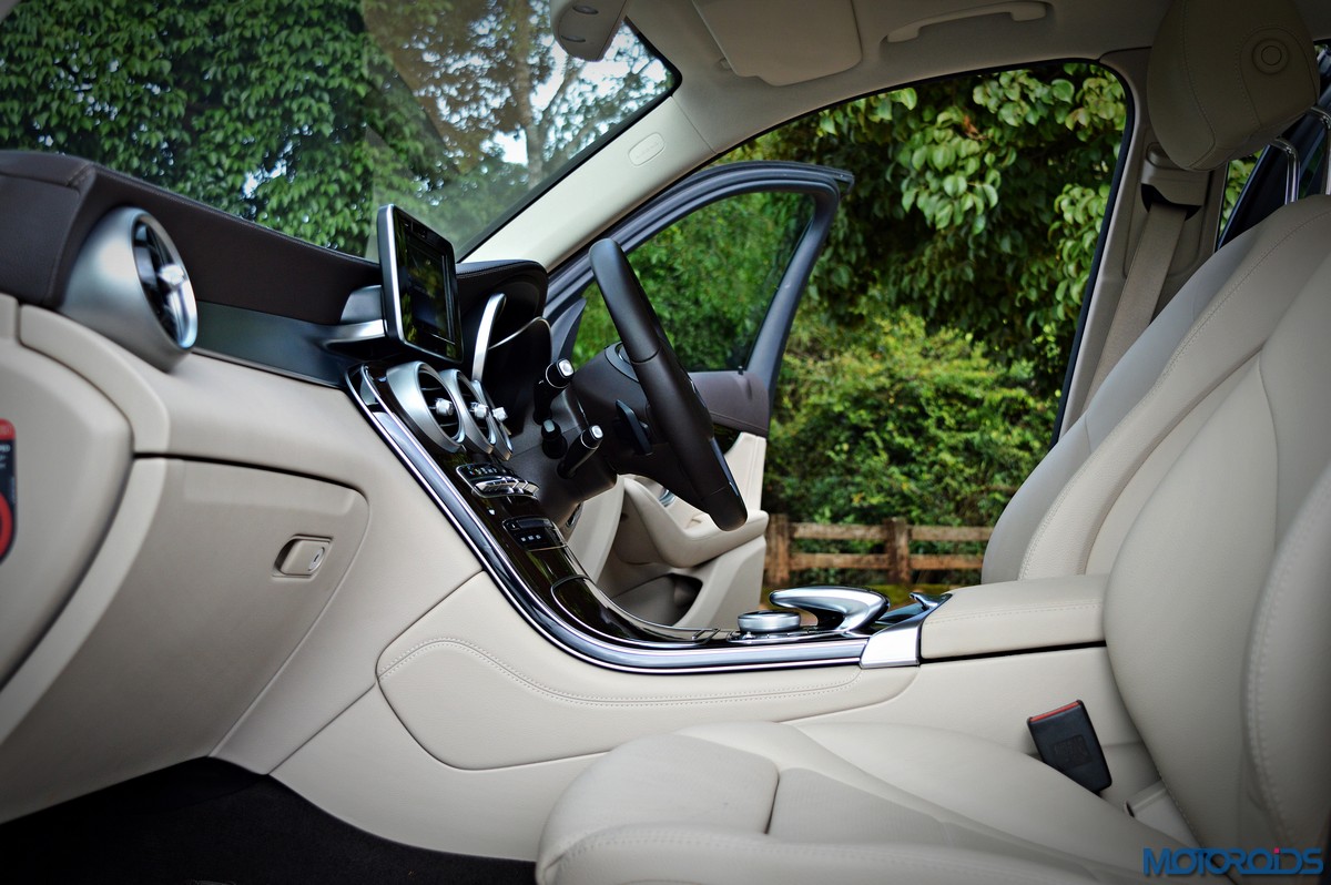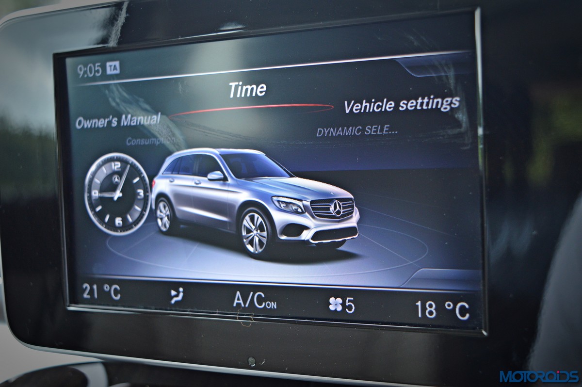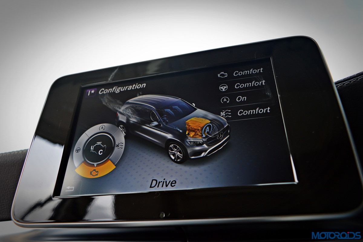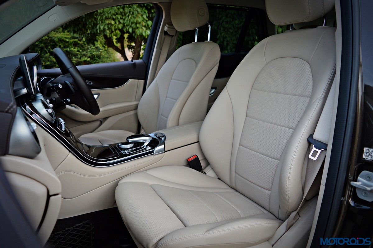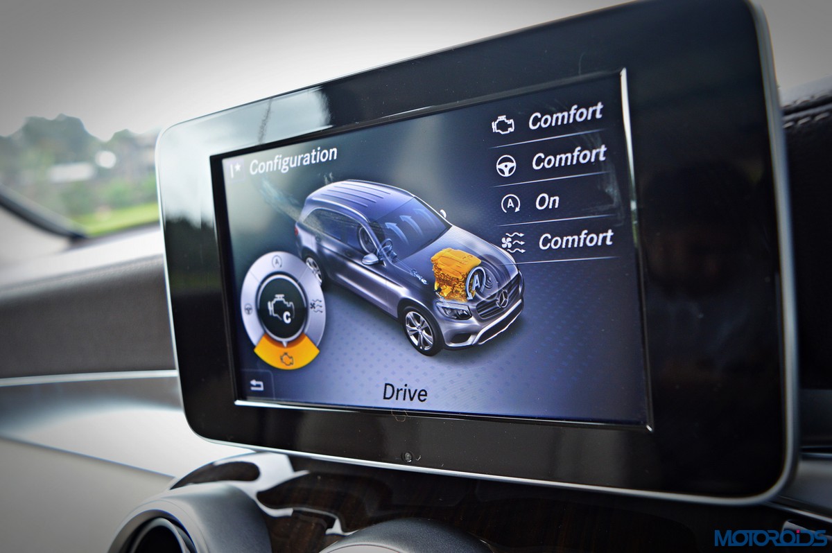 You sit higher up than you do in the C-Class, which befits an SUV’s seating position, and get a commanding view of the road ahead. Finding your desired seating position is just a few taps on the ergonomically placed buttons on the door that electronically adjust the front seats with 4-way lumbar support. The seats themselves are immensely comfortable; with perforated leather upholstery and substantial bolstering that cosset you. The rear bench features a 40/20/40 split, apart from including a collapsible arm-rest with integrated cup holders in its midst. Space and comfort at the back, especially headroom, is significantly more than the C-Class, while 57 mm more rear leg room, along with 28 mm more rear shoulder room is now available as compared to the erstwhile GLK.