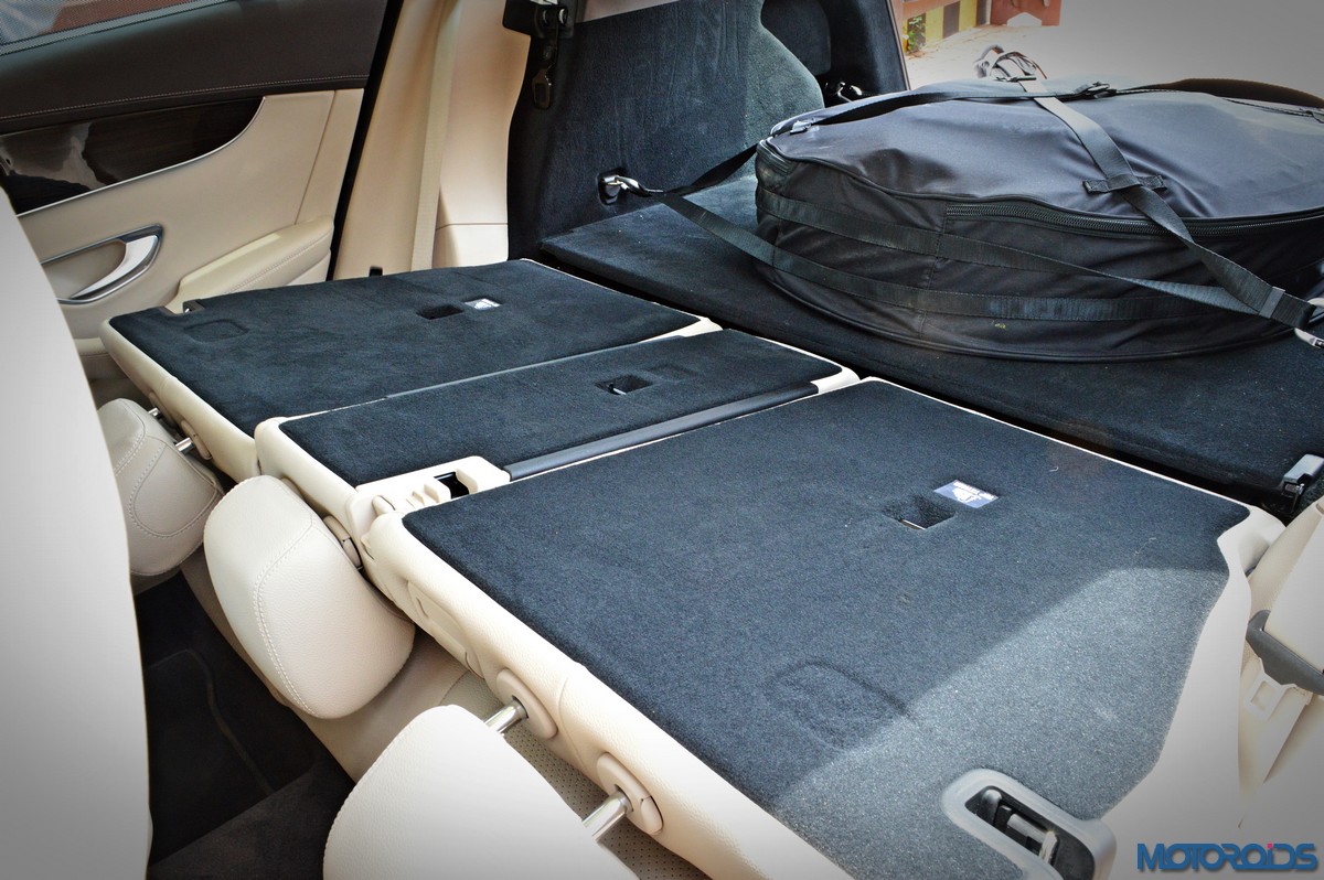 The load capacity behind the rear bench is rated at 550 litres, with space increasing to a cavernous 1600 litres with the rear seats folded flat. The rear backrests have power release buttons, both on the left and the right. In-cabin storage is taken care of by a spacious glove-box in the dashboard, two hidden cup holders in the water fall center console, and a massive, covered storage area between the front seats. The door pockets can swallow 1-litre bottles with ease, while there’s one more lockable stowage compartment under the load compartment floor.