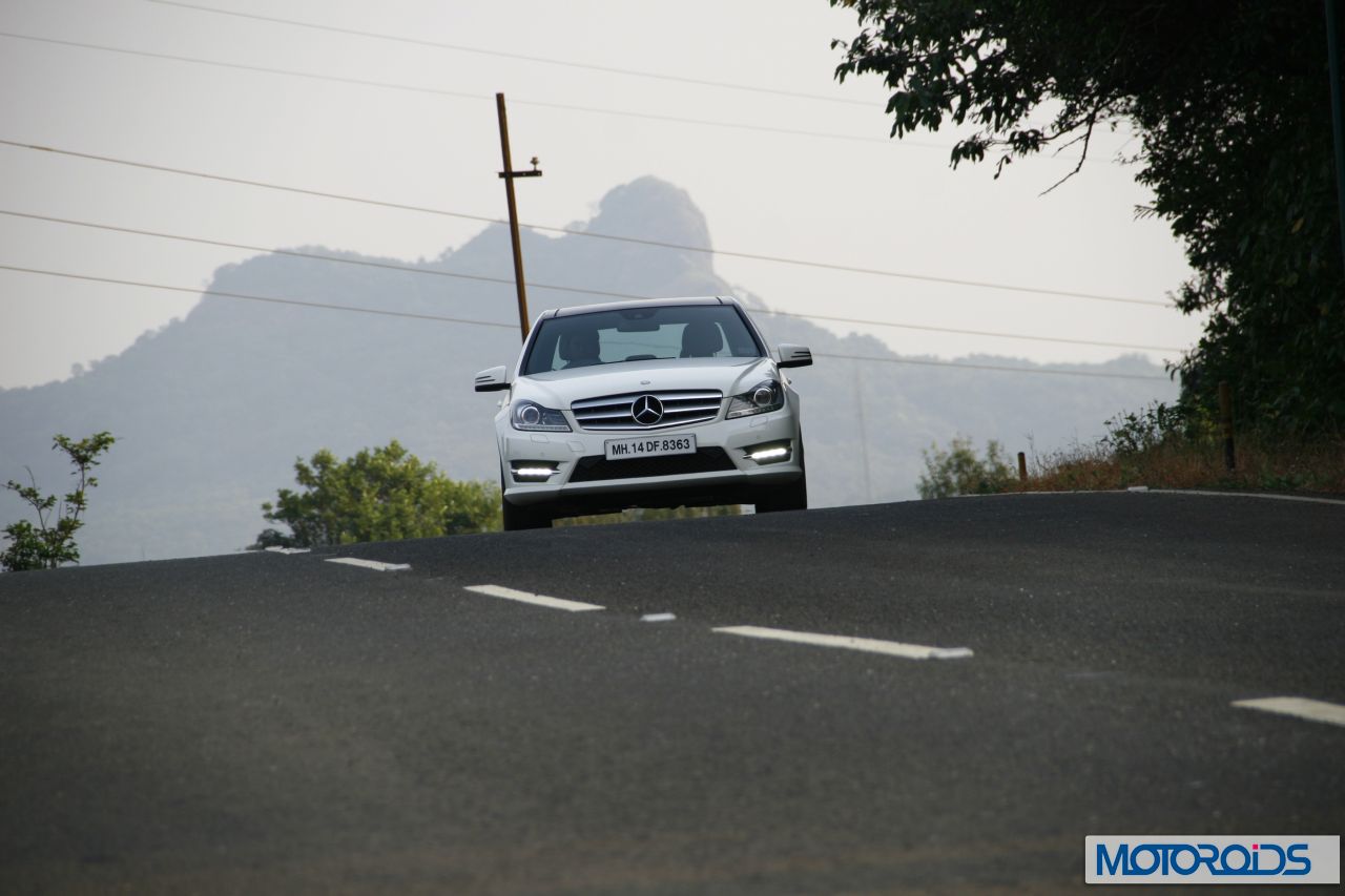 The power is laid down to the tar in a fashion slightly fiercer than we know Mercedes cars for. Burying the pedal means the C250CDI will lunge ahead with some degree of severity – and how we love it! Apart from the normal Drive mode you have Manual and AMG edition exclusive – Sport mode. Unlike the normal drive mode which focuses more on comfort and efficiency, the Sport mode lets the revs hold on for longer (almost upto redline) before upshifting and downshifts more quickly too. The suspension gets stiffened up for a more dynamic ride, but more on that later.