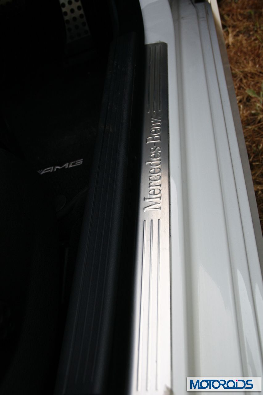 Apart from the delightful panoramic roof, the center console comprises of the ‘Sport’ button which itself is an inclusion enough to tilt the buying decision in Merc’s favor for an enthusiast. Then you have AMG branded floor mats, brushed steel brake/ accelerator / parking brake pedals with black rubber studs for better grip. The 3 digital-analogue dials on the instrument cluster come with special surrounds. Other AMG Sports Package bits include aluminium-look gearshift/selector lever with leather cover.