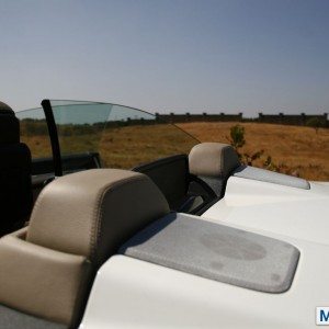 Space inside is generous for the front two passengers, with the first two seats offering great comfort and support. Same, however, cannot be said about the back seats, which though useable by adults, don’t exactly offer liberal leg space. The backseats are angled upwards to make sure that the knees don’t brush against the backrests of the front seats. The trick actually works for average sized adults, and four adults can travel together on this car with light luggage, but not for more than a couple of hundred kilometers. Also, the backseat is meant strictly for two passengers as the central portion is raised with two permanently fixed cp holders. Boot space is reduced, thanks to the soft top stowing into the trunk. It still is reasonably good with a luggage capacity of 390 liters.