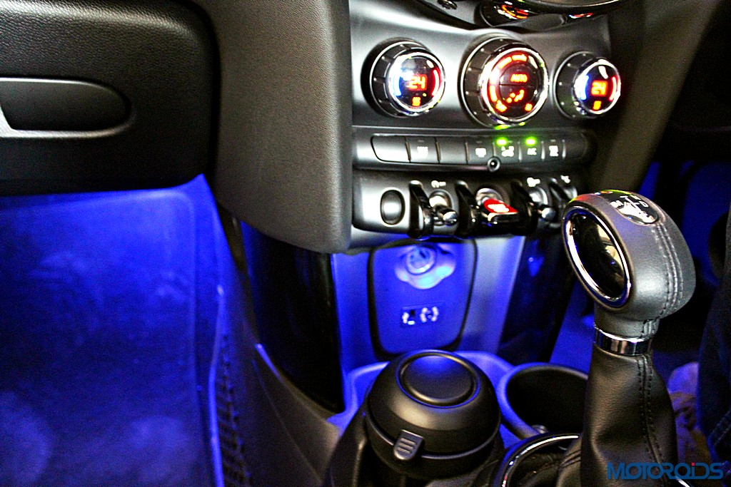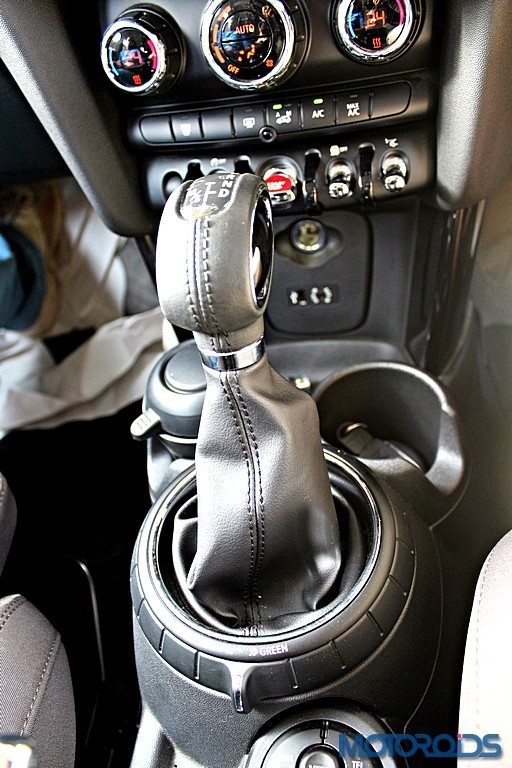 For the first time in Mini history, the Cooper D also comes with the new Mini Driving Modes – MID, SPORT and GREEN, each of which can be selected via a cool, rotary switch at the base of the gear or selector lever. The MINI Driving Modes influence the ambient lighting, the displays in the circular LED centre instrument, and more importantly, the shift characteristics of the automatic transmission, along with the steering sensitivity. While the GREEN mode tunes things to consume as less power as possible, SPORT authorizes sharper responses from the Mini’s hardware that makes you quicker.