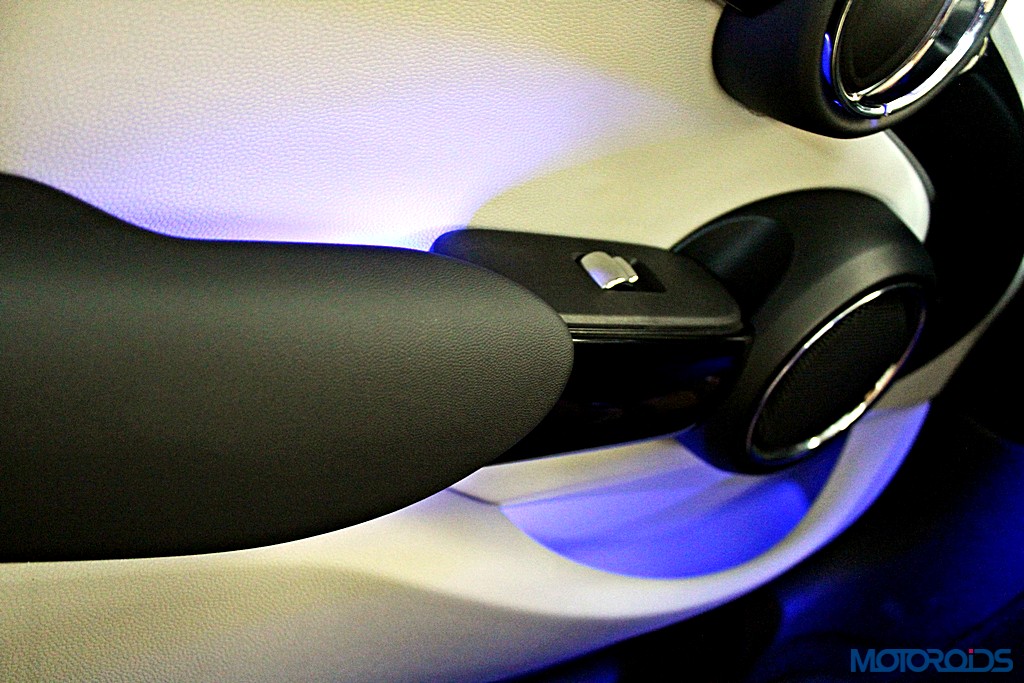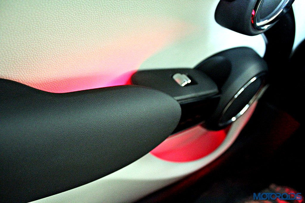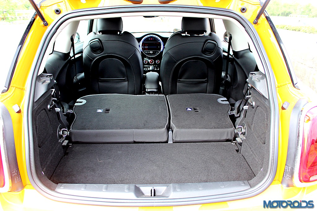 Luggage compartment volume in the 3 Door has been increased by 51 litres to 211 litres over its predecessor. In comparison, the longer 5 Door offers 278 litres of boot space.The rear backrest is fold-able with a 60 : 40 split in both, while one can set the mood with the optional lighting package with LED interior lights and orange-coloured ambient lighting. However, the rear seats are a squeeze for adults, while the fixed rear windows don’t help much.