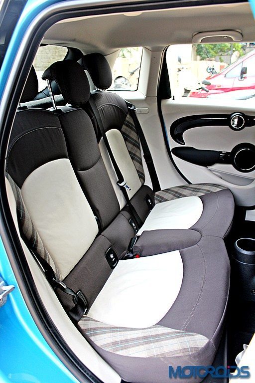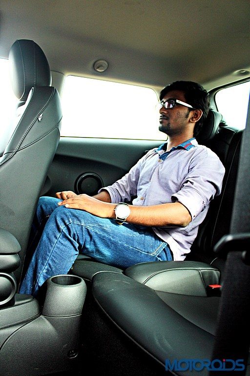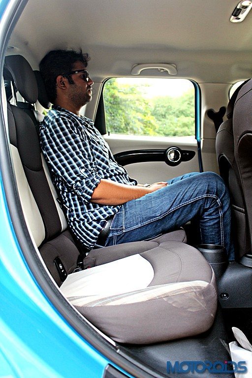 Access to the rear seats is easier on the 5 door than in the 3 Door, because duh.. However, it’s a similar story when talking about space in the back. It betters the 3 Door by a fair margin but isn’t still generous in terms of knee or shoulder room. The second row backrest is also a bit too upright for comfort. The small windows don’t help matters much here as well, while the seats could also do with a longer squab.
