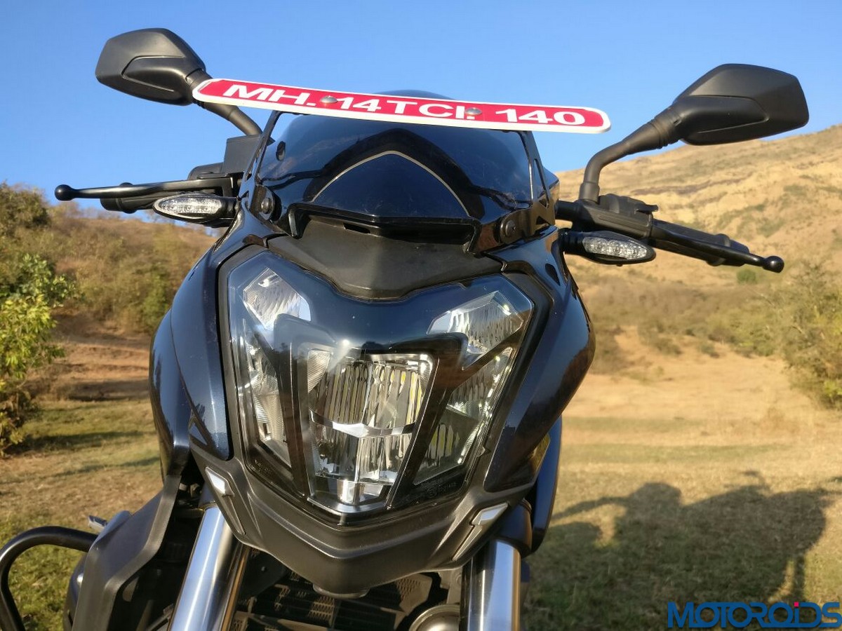 • The default suspension setting at 4 (the rear mono-shock is 10 way adjustable) is relatively stiff. The setup, along with the 43 mm telescopic front forks, feels fabulous around bends but hard and bouncy at slow speeds. Though we still have to change the settings and see how much difference it makes.