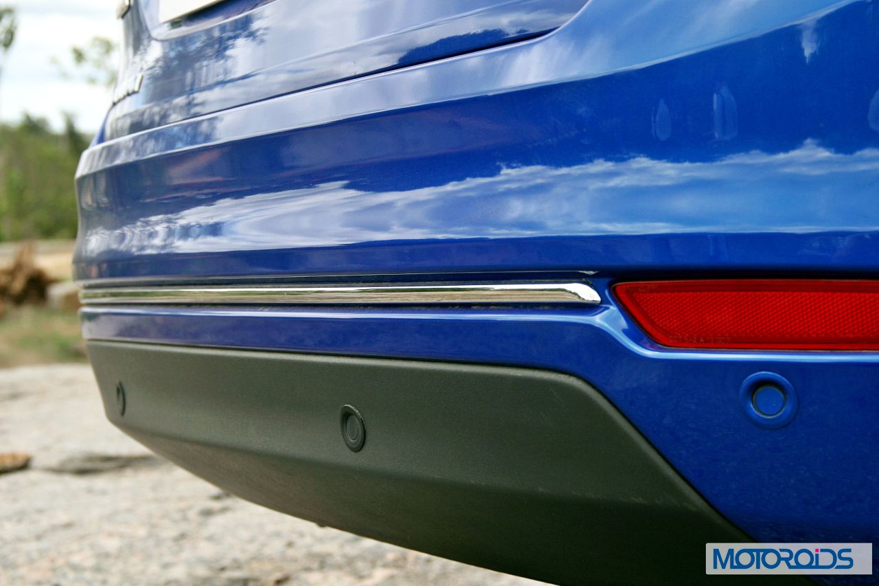 Parking sensors for Park Assist. Notice the new chrome insert on the bumper. The reflectors flanking the chrome strip are also new