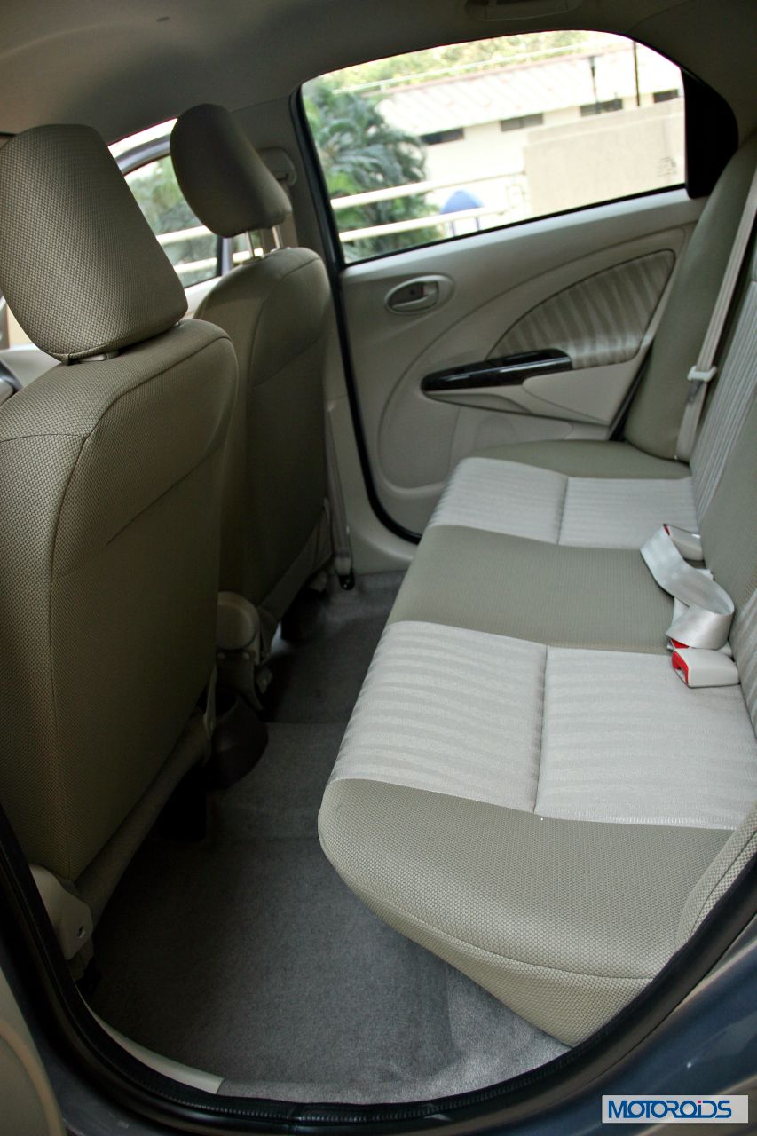Although we aren’t very fond of the centrally mounted instrument console of the Etios, and think that the layout could be improved for better appeal, the overall quality and finish inside the cabin is satisfactory. Those unique A/C vents, though functional, could have been easier to use. The Audio unit doesn’t gel very well with the rest of the cabin, and though feature laden, doesn’t present itself as a very intuitive unit to use. It takes some time getting used to. The sound output, though is good for the segment.
