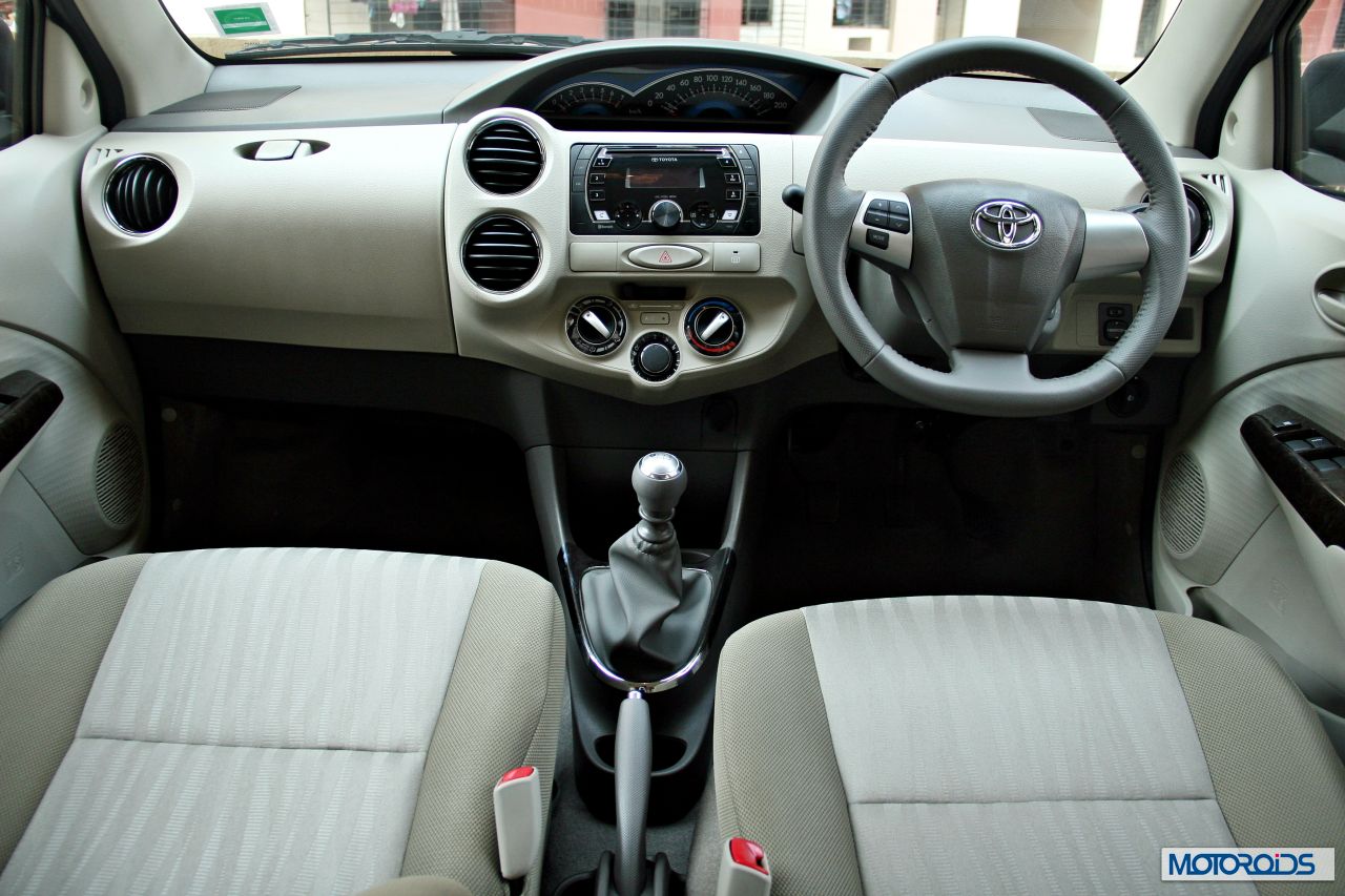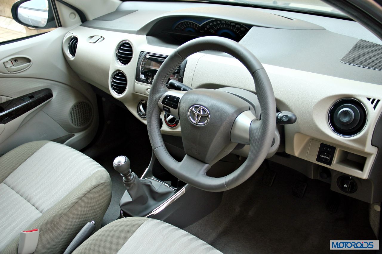 The twelve spoke 15 inch wheels on the car are new, too, and look rather good. Also, the door handles now have a chrome element. Toyota have also introduced a new Pearl White color for the new Etios. For those looking for some extra zing, Toyota is also providing a whole bunch of accessories. There are two accessory packs to choose from – Real Luxury and Decor
