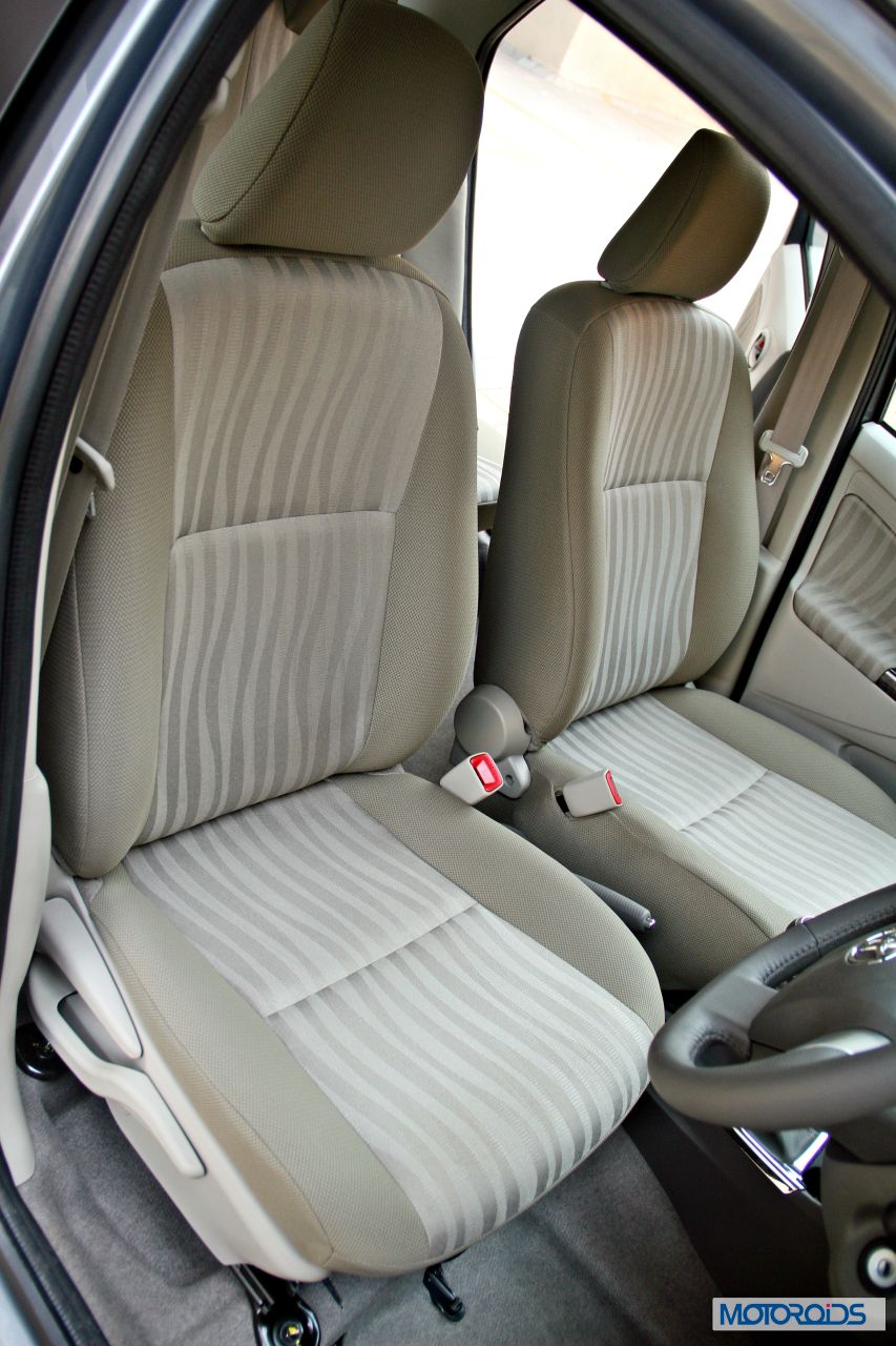 The Etios, as always, excels in terms of cabin space and comfort. The big, wide seats, both up front and at the rear are quite luxurious for the price you pay for them. Improvements in the comfort, support and quality of the seats have also been carried out in the past year to match the customer expectations. While the front headrests, unlike some other cars in the segment are fully adjustable for height, the rear units are not. The rear headrests are high set, though, and should provide some protection against whiplash injuries in case of a rear collision.