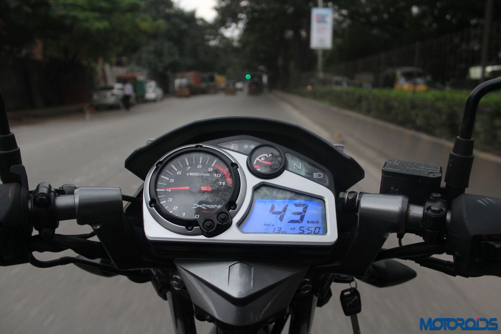Nought to sixty comes up in a little over five seconds while the motorcycle shows potential to reach the claimed top-speed quite efficiently. The engine has got a sporty grunt which I particularly liked, especially after the 7,000 RPM mark, with a pleasant step-up in performance. The sweet spot of the rev band lies between 4,000-5,000 RPM where the tachometer on the new Xtreme Sports, in top gear, points at city speed limit of 50-60 kph and a little twist of throttle can let you overtake the vehicle ahead of you with ease. Riding at three digit speeds is not much of an issue but the motorcycle feels comfortable to stay around 80-90 kph mark in the top gear. The five-speed gearbox is pretty crisp and precise.