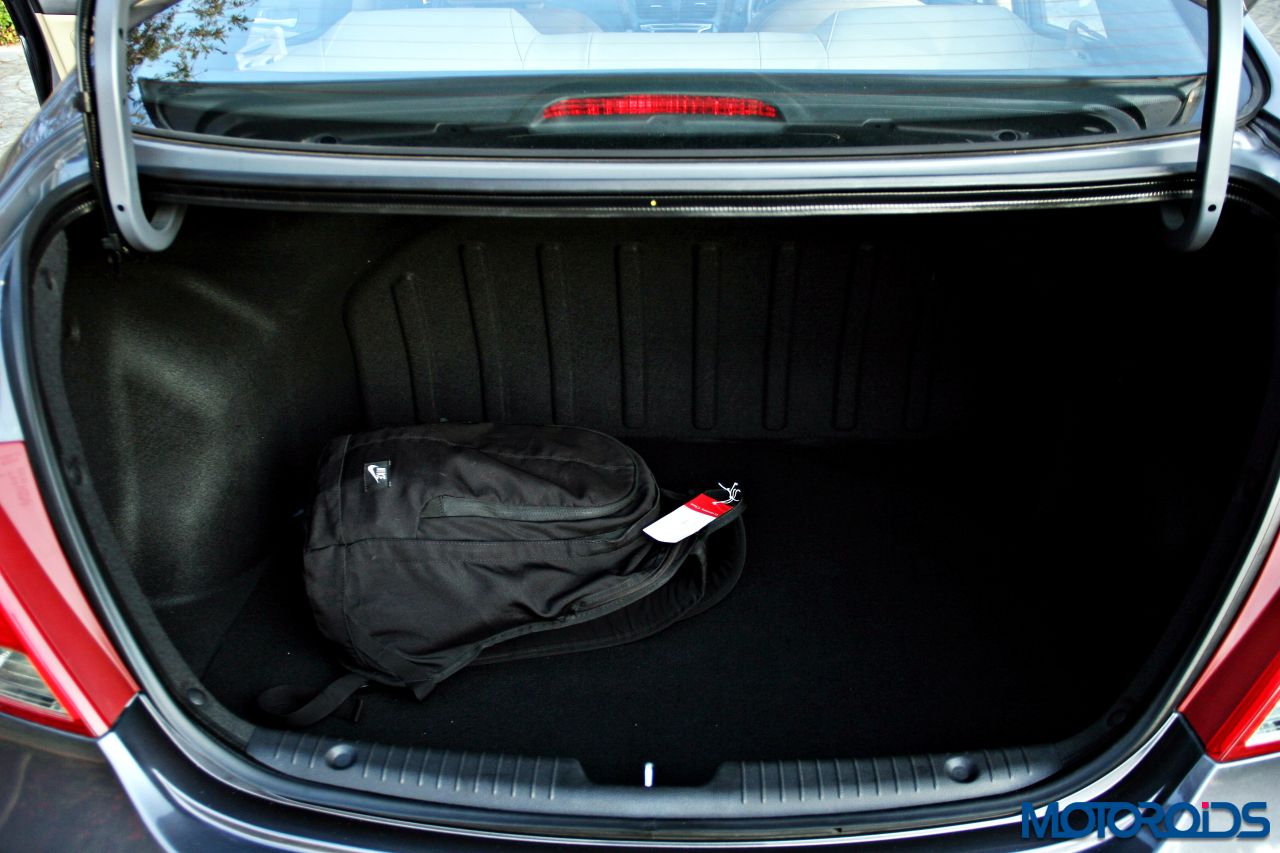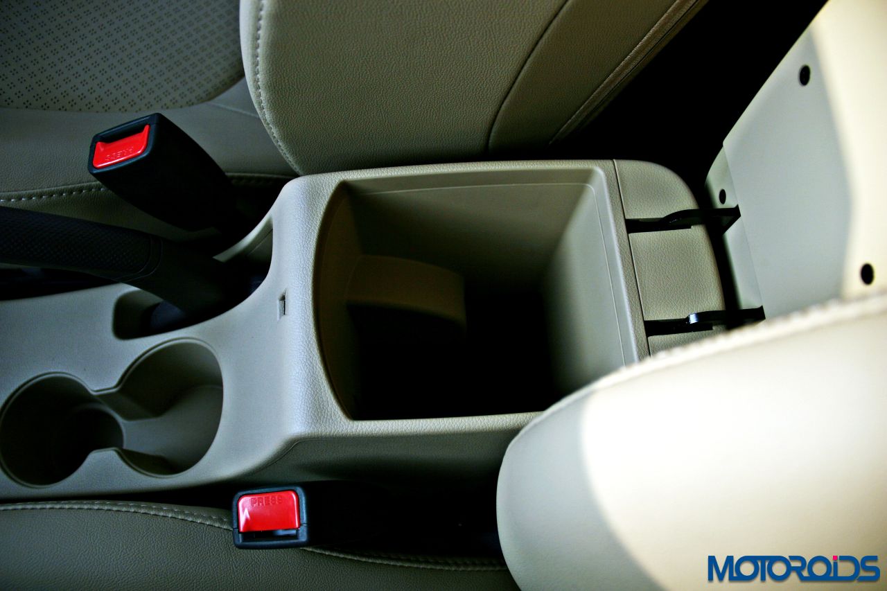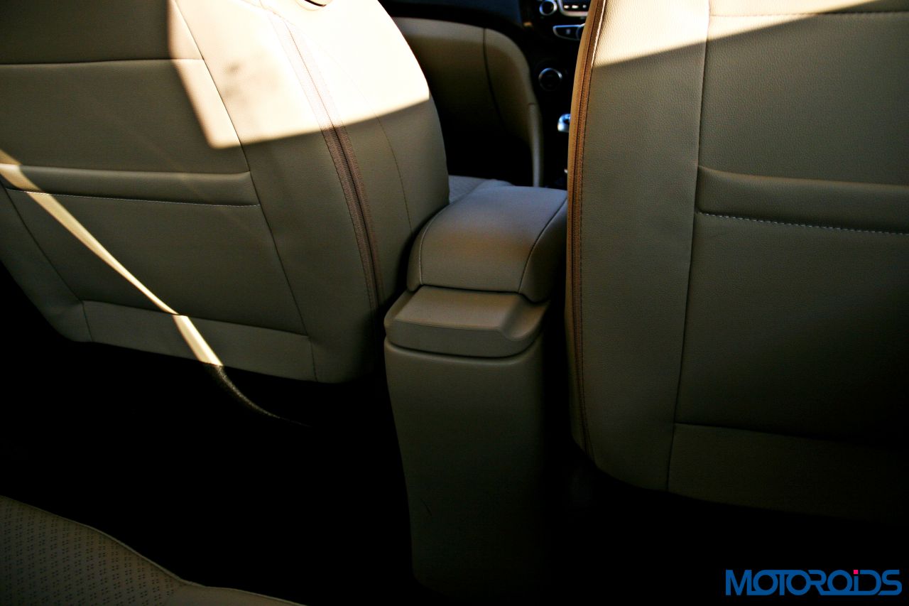 The rear seats though, don’t score all that high on under thigh support, especially for folks who almost reach or breach the 6 feet mark. Although there is space to rest your arms on all doors, the rear seat has been equipped with an arm-rest in the middle that also has a cup-holder and can be stowed away when there is a need to ferry five humans, although that would be a bit of a squeeze. Head and shoulder room is adequate for people of all sizes.