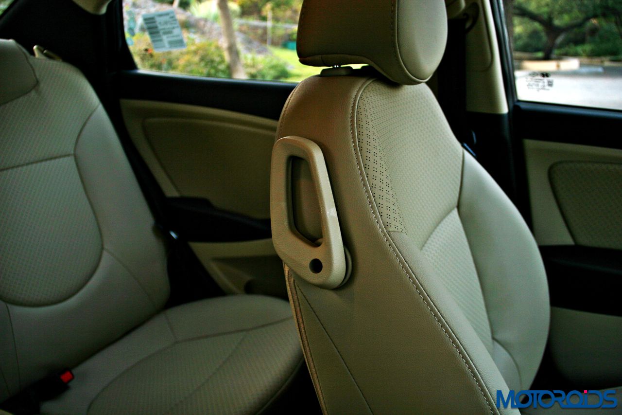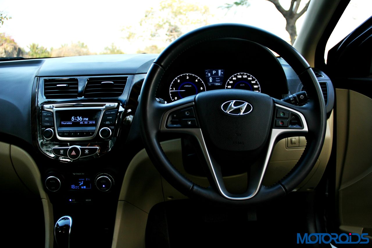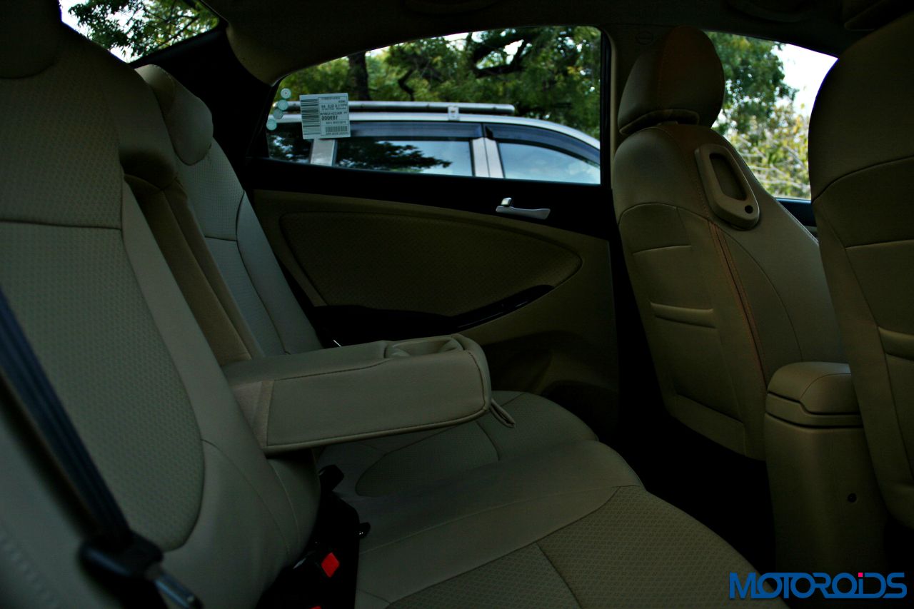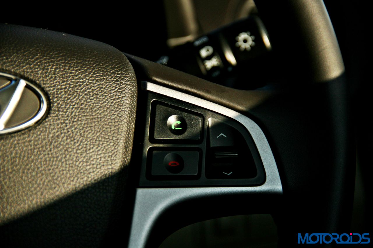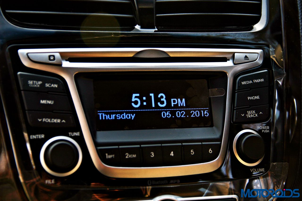 Hyundai hasn’t equipped the 4S Verna with a rear A/C vent and given the time of the year, we weren’t really able to test the cooling efficiency of the unit. However, it has something Hyundai calls a ‘Cluster ionizer’ that ensures the air quality in the cabin remains fresh and healthy. Shedding some more light on the music system, we feel a touch screen infotainment unit should’ve made an appearance, given the fact that even cars from a lower segment have started coming with one. Audio quality from the 6-speaker unit isn’t something that would please the audiophile in you, but does its job, filling the cabin with distortion free sound. It can play discs, music from your cell phone via Bluetooth, the Aux-in port, or you may choose to use the 1GB internal memory to store the symphonies of your choice.