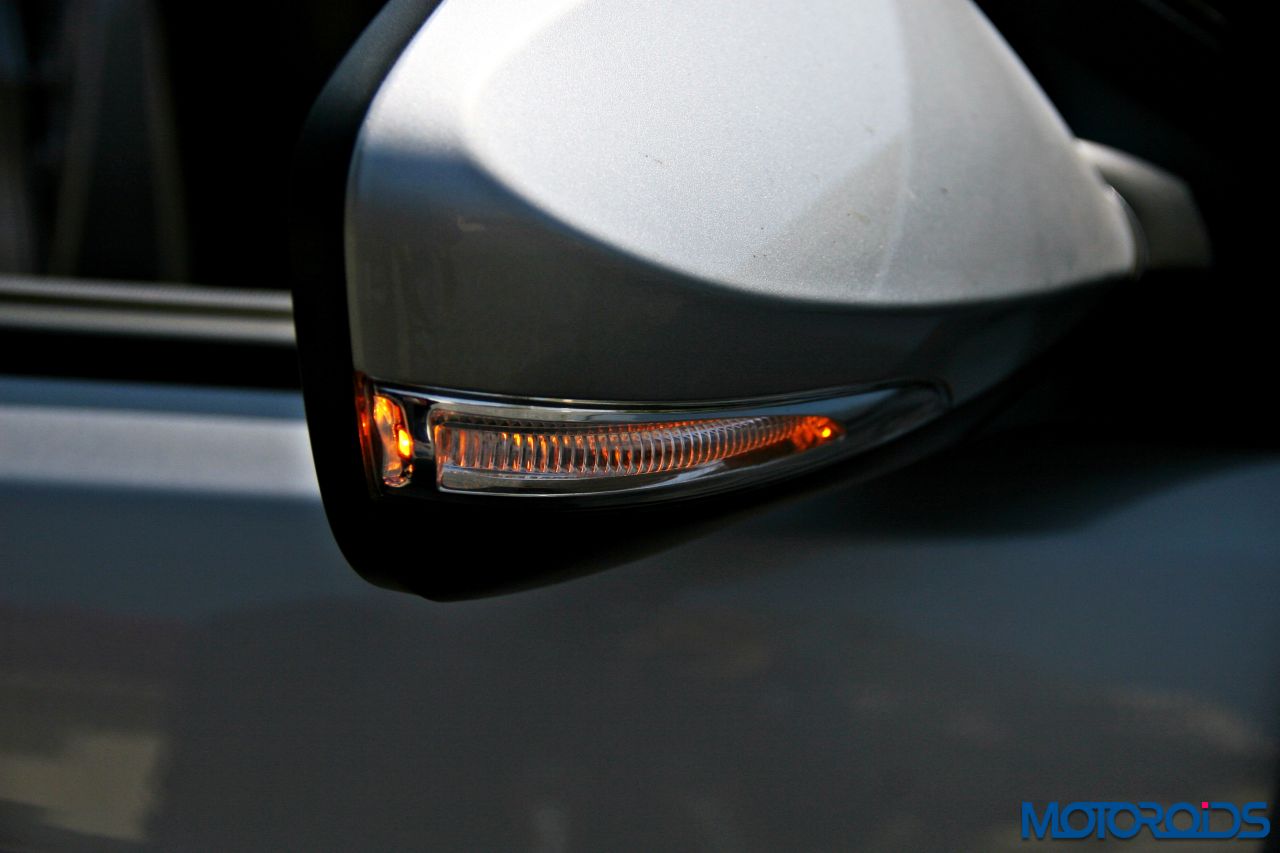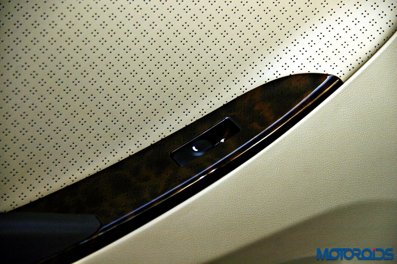 Windows all round are powered, however, it is only the driver side glass that gets an anti-pinch and auto up / down feature. Faux-wood makes an all round appearance around every window switch on all doors. External mirrors fold electrically and have been embedded with repeaters for the blinkers. Both sun visors come with a mirror, while the internal rear-view mirror is an electro chromic unit that also incorporates the screen for the rear-view camera which works alongside parking sensors.