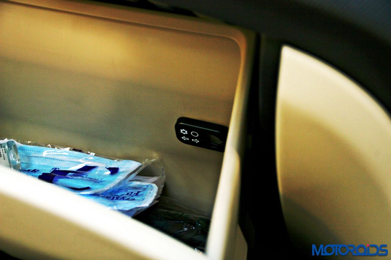 Beginning with the conventional looking steering wheel, it can be adjusted for rake and reach. It incorporates controls for the audio system and telephony, switches for which feel robust and operate with a positive feedback. Our only grouse, the little horn pad requires one hand to be taken off the wheel in order to honk. The other thing that would make you take your palm off the wheel is the toggle switch for the Multi-information display, which has been placed behind the round thing, bordering the instrument cluster. Incorporating it in the steering itself would’ve made life easier. The stalks handle the regular fare of controls for the automated headlights, wipers and blinkers. The OBD port and dials for the follow-me-home headlight delay function and leveling adjustment are provisioned just above the bonnet lever.