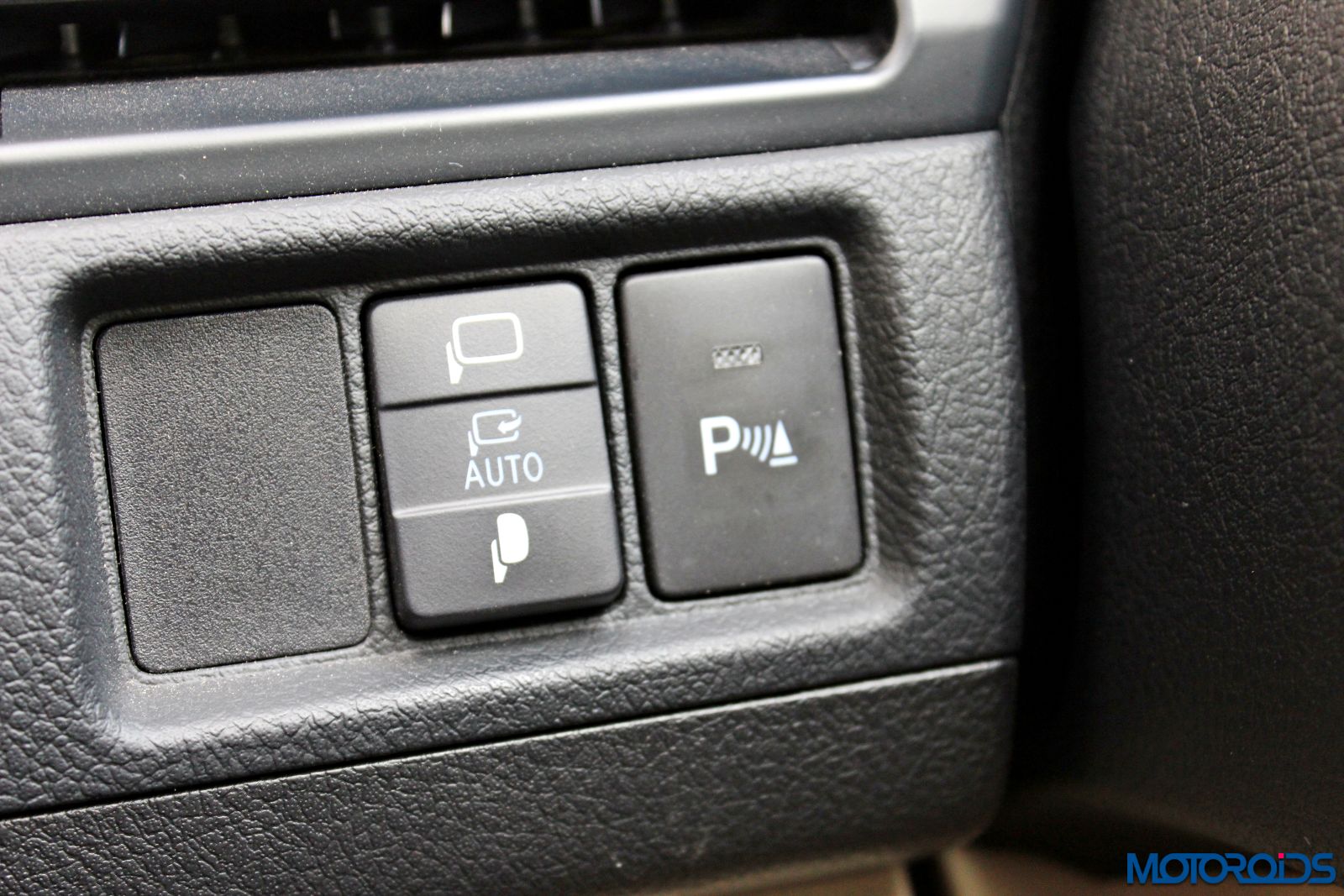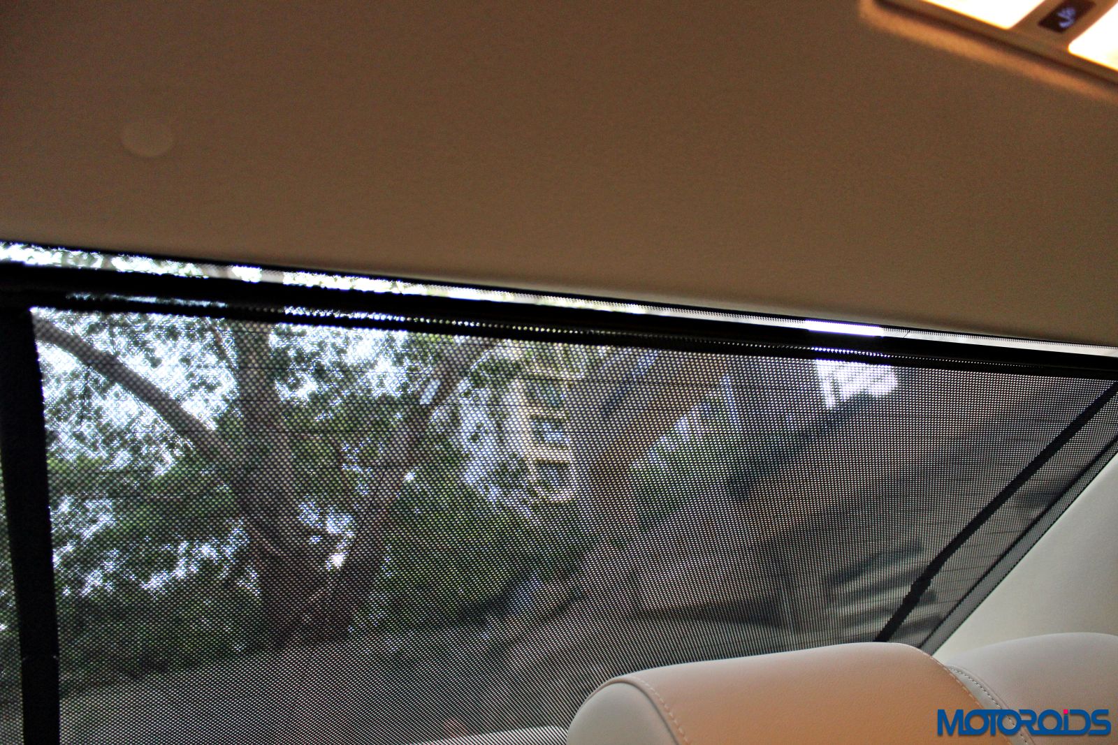 Rear windshield suncreen is electronically operated and goes down on its own when the gear lever is slotted in reverse