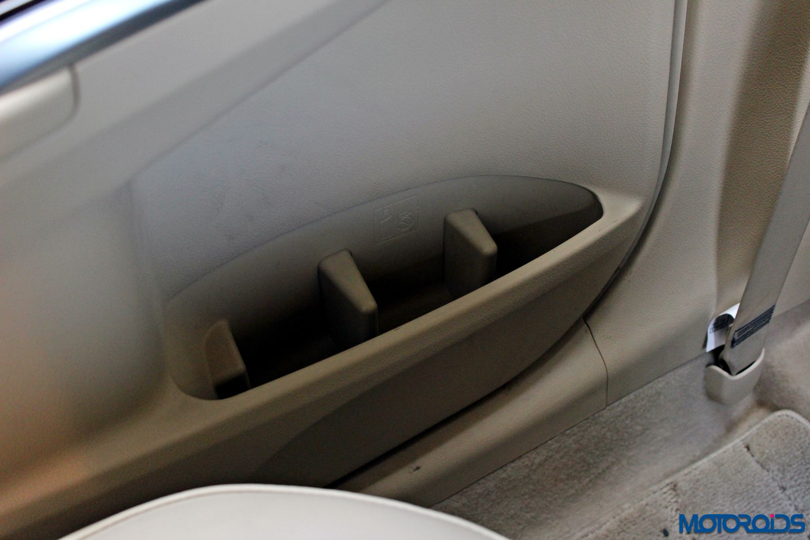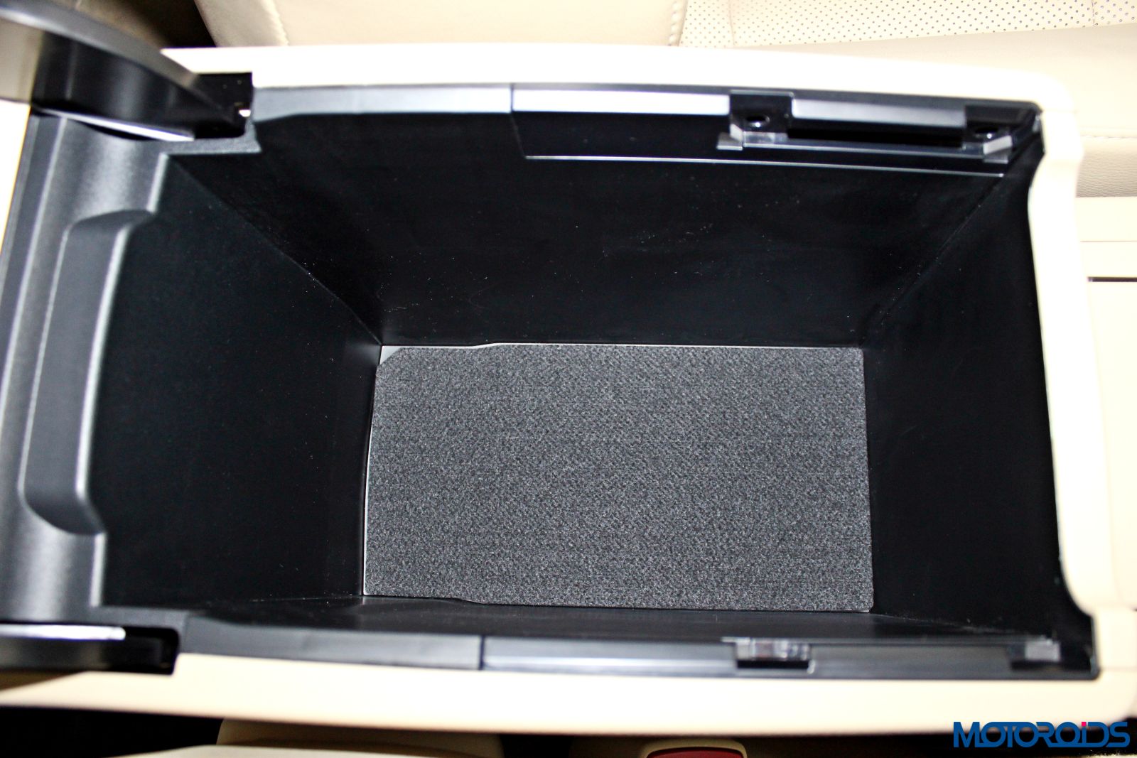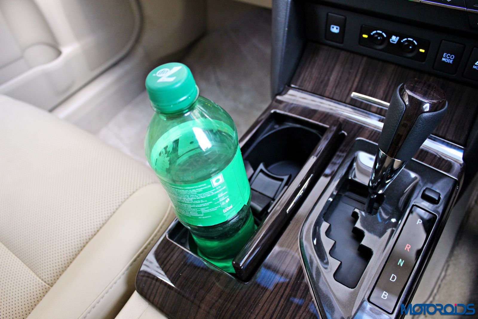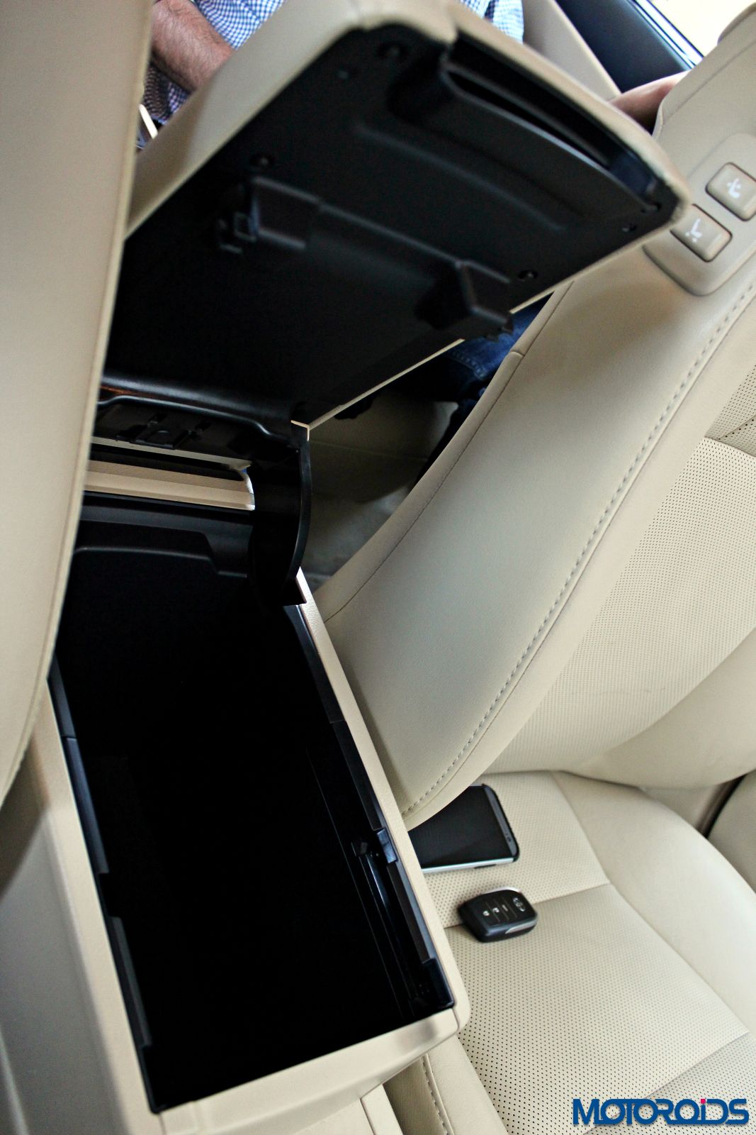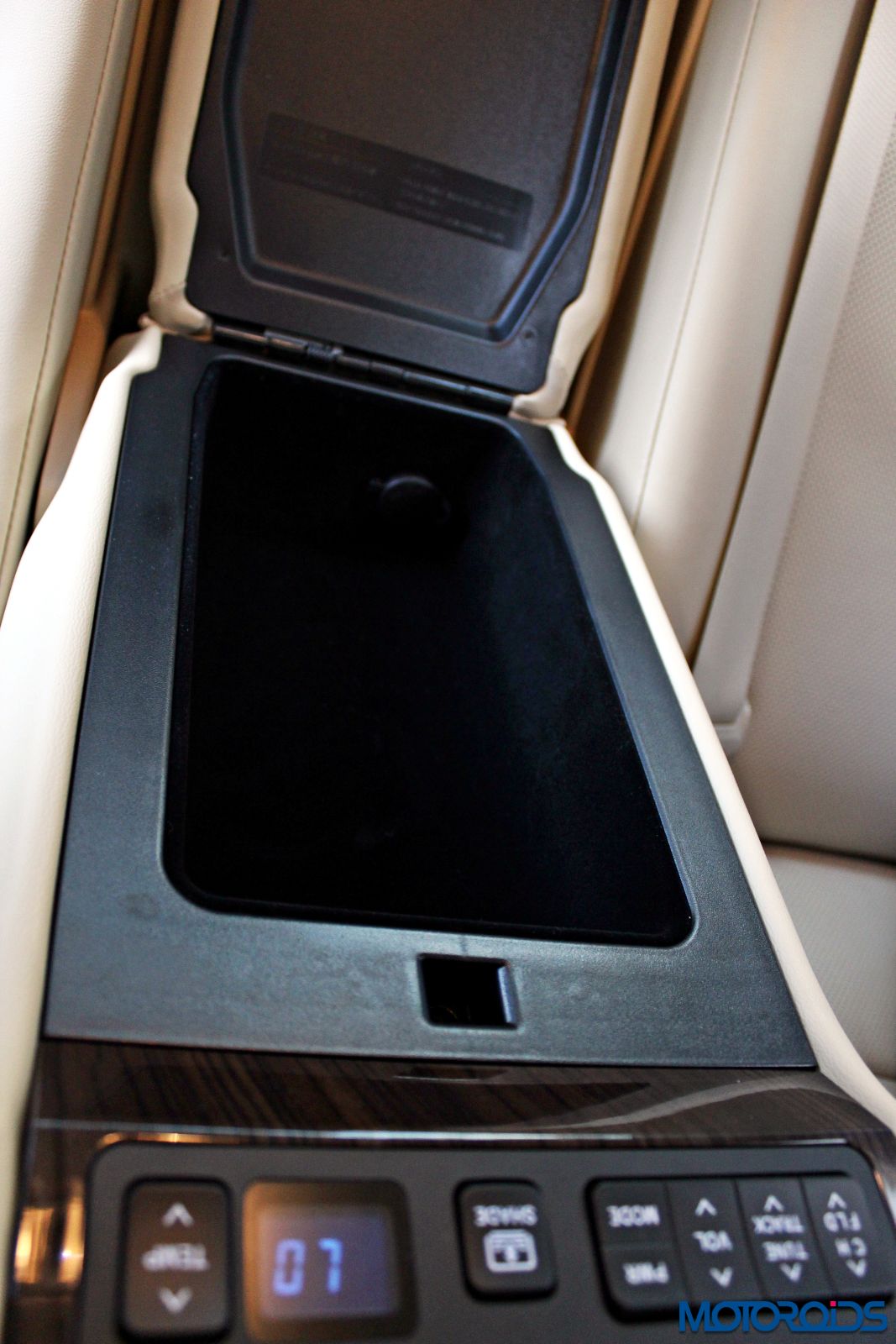 Front central armrest is also a refrigerator that runs really deep and can swallow a 1-liter bottle with ease