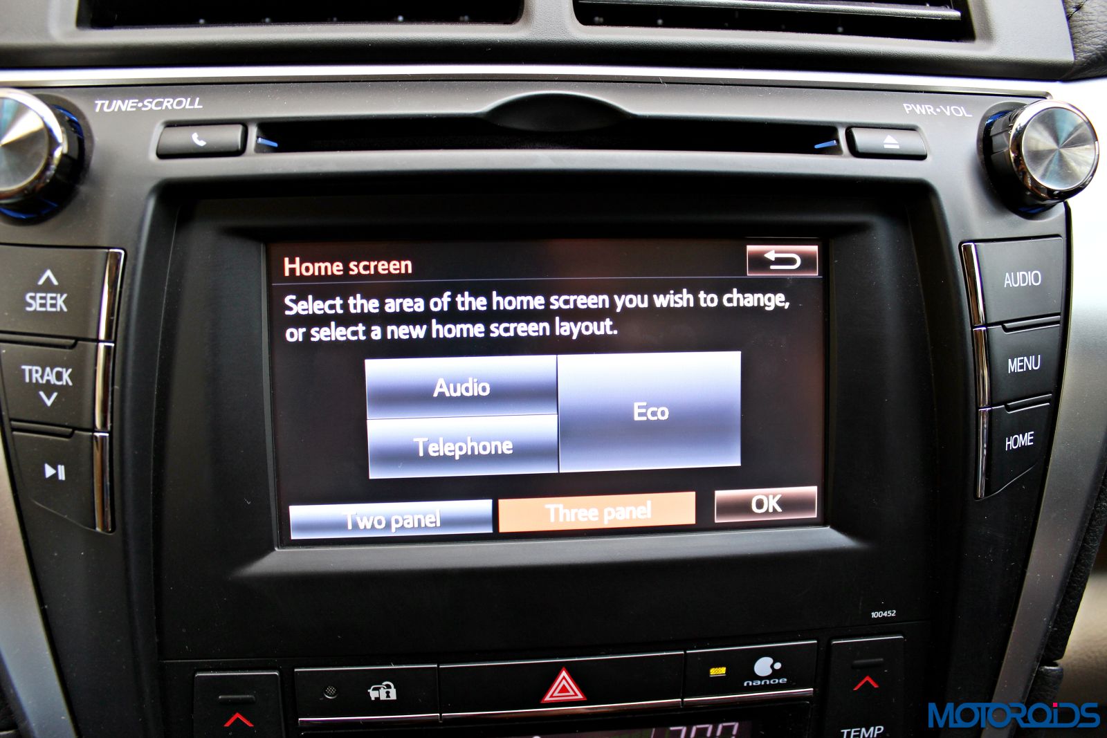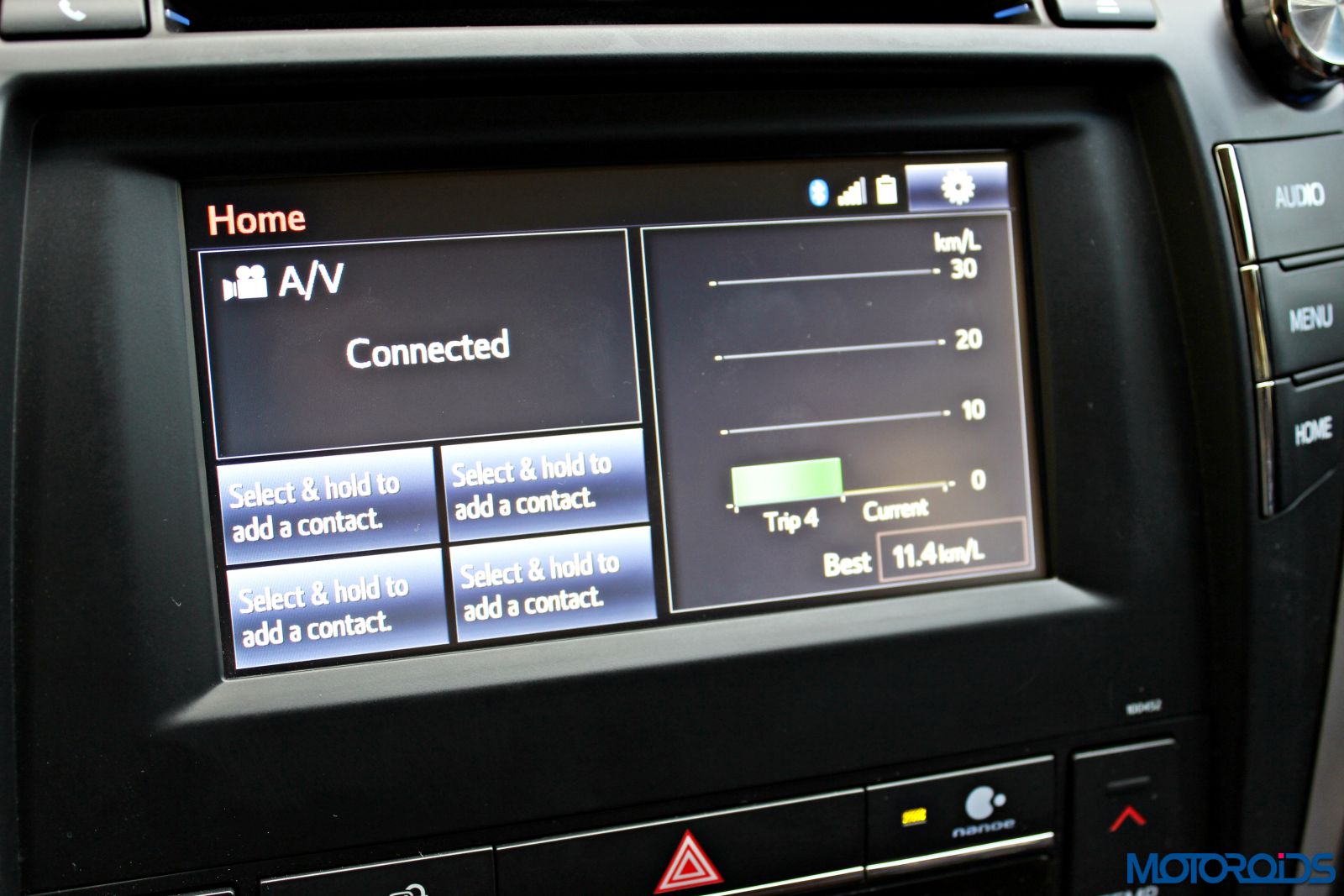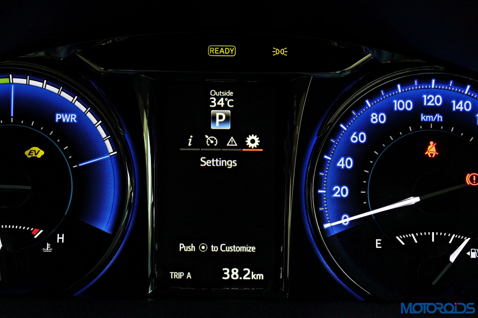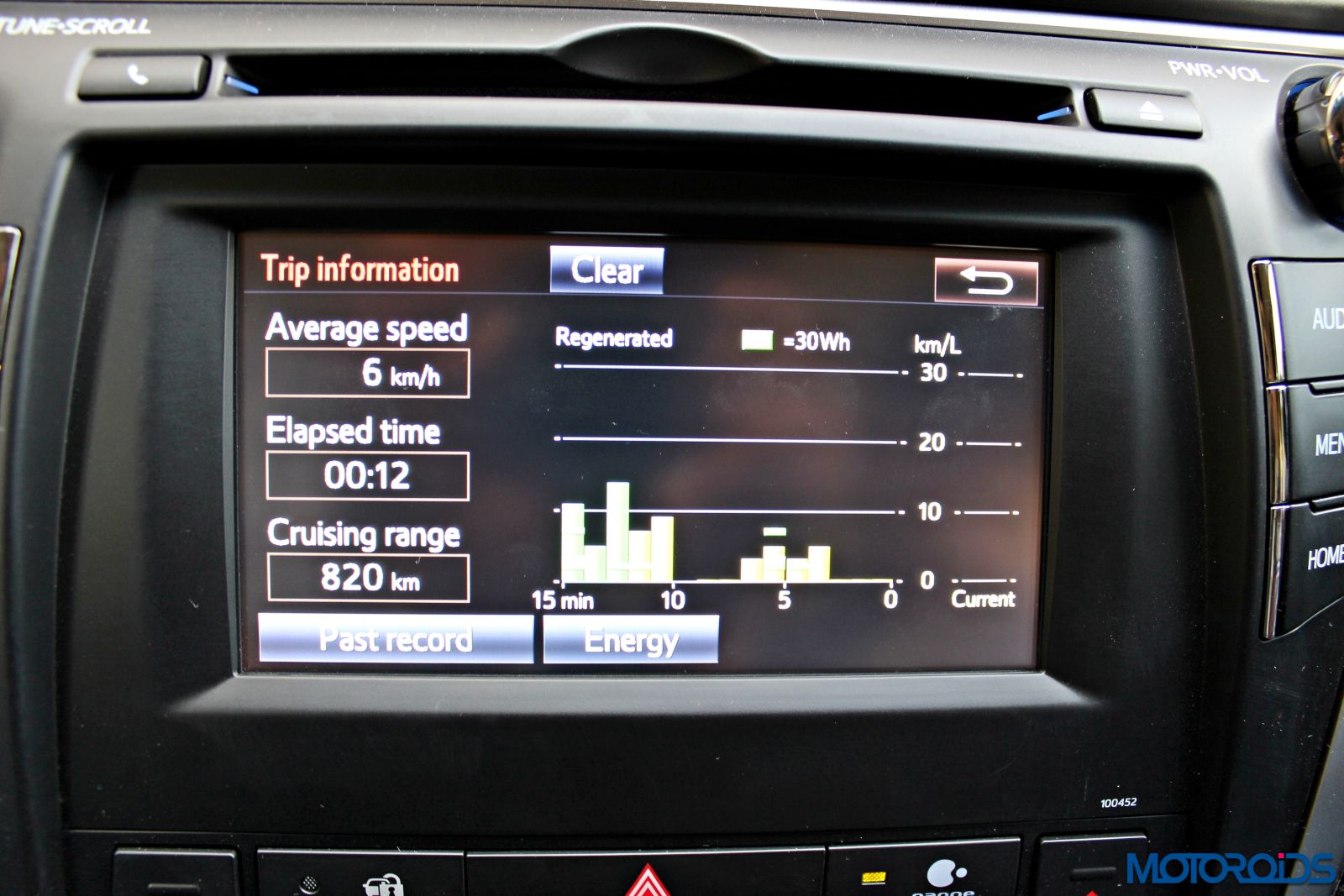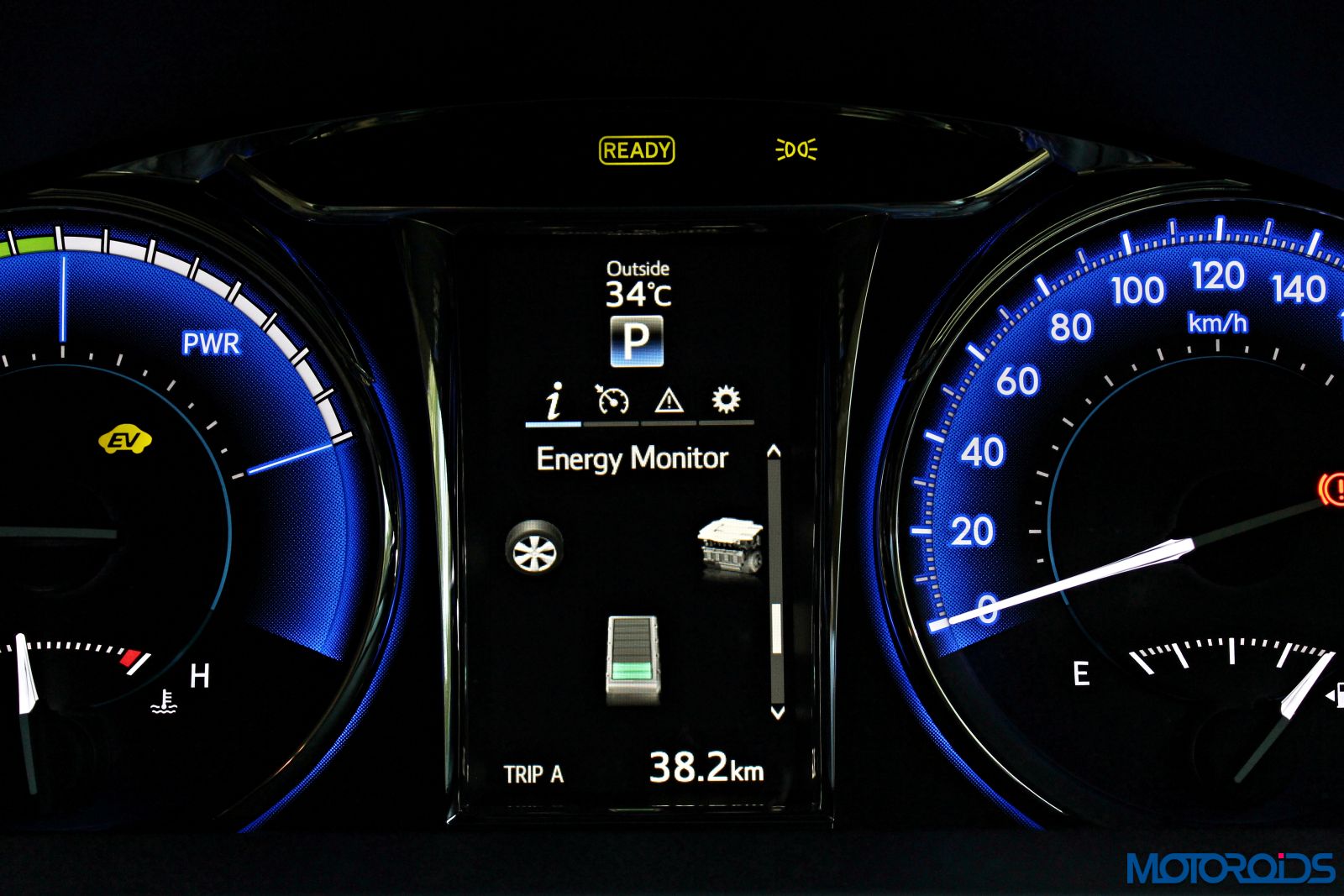 It displays the fancy energy monitor and all other vehicle parameters so that the driver doesn’t need to take his eyes too far off from the road.