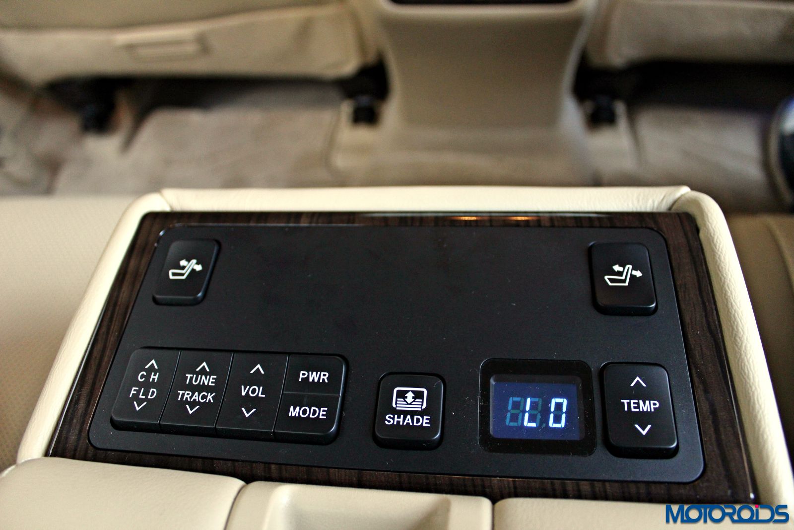 Back benchers can adjust the front passenger seat with those buttons on the backrest