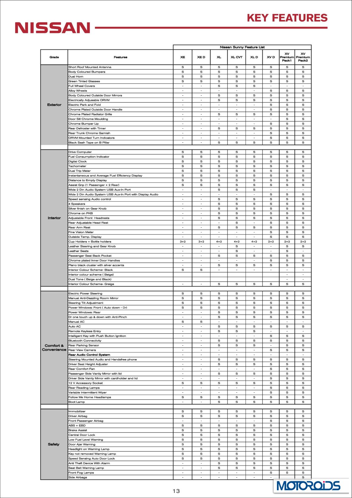 With the launch of its new version, the Sunny is available in a total of 8 variants – XE, XE D, XL, XL CVT, XL D, XV D, XV Premium Pack 1 and XV Premium Pack 2