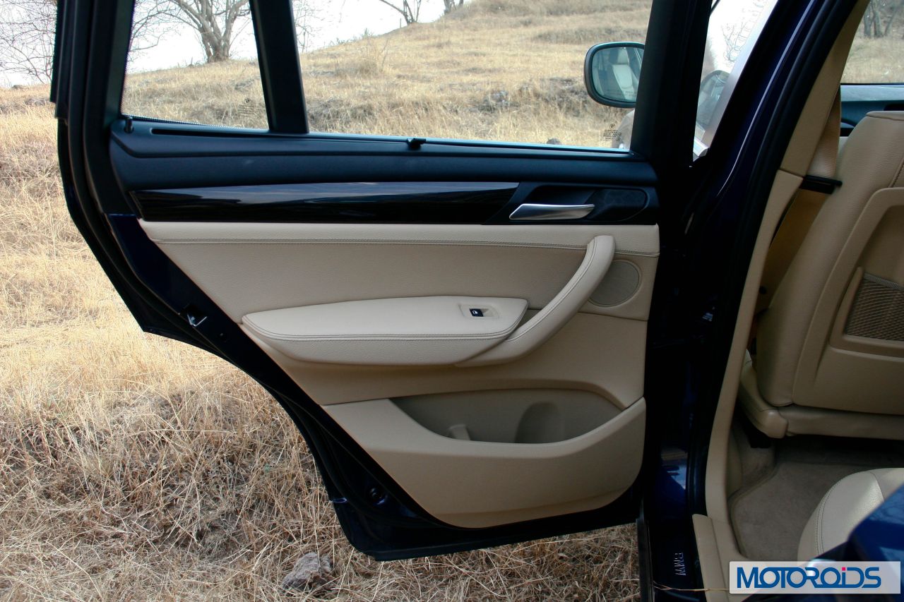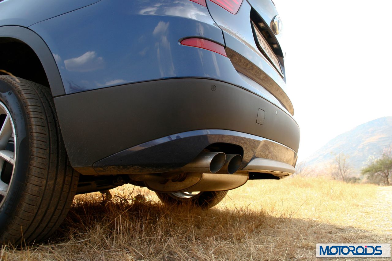At the rear, the family connection is evident again with the familiar tail-lamps which are keenly similar to the bigger X5. The tailgate has a sharp bulge right below the rear windscreen followed by a recessed section for registration plate. Finally, you have another sharp horizontal recess at the bottom of the tail gate which is a single piece unit, unlike the X5’s twin panel unit. Single side twin exhausts and an under bumper aluminium garnish (front has it as well) completes the X3’s design package.