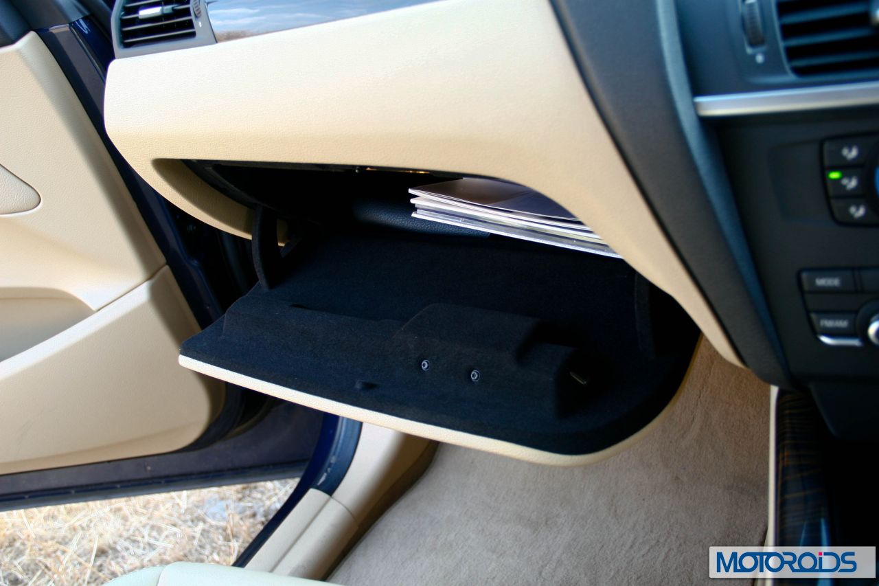 Inside the cabin, familiar and time tested BMW materials and layout welcomes you. Features abound, but BMW have kept the interior simple, tasteful and clutter free. There are ample storage spaces within the cabin. Both front and rear doors have space for big 1 liter water bottles. There is a twin cup holder ahead of the drive selector. The central armrest can also hold quite a few items. There is an additional storage area under the steering wheel on the right hand side which can store items like wallet, mobile and then some.