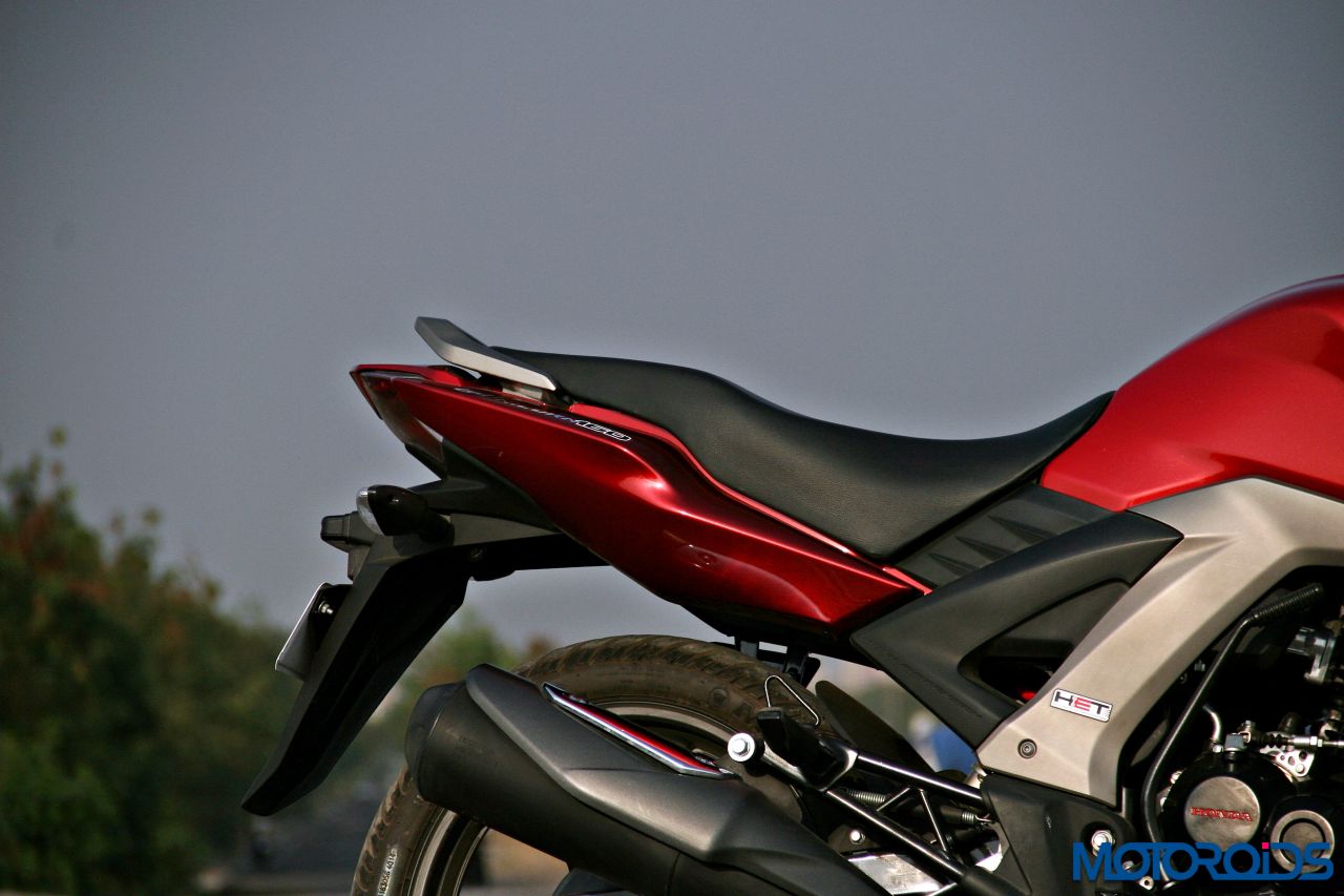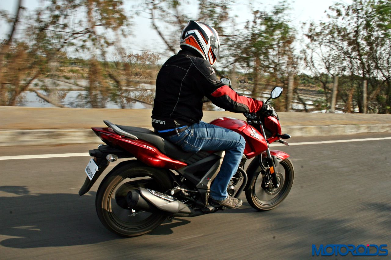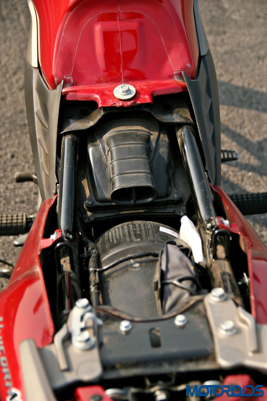 The suspension, as we figured is set slightly on the stiffer side, though the mono-unit is damped extremely well. While there is a wee bit of stiffness to be experiences while riding solo, the suspension gets a new level of composure with a pillion rider. The Unicorn, thanks to its extremely well sorted chassis and suspension feels rock solid in a straight line, even while doing triple digit speeds. The balanced chassis also allows for effortless, natural corner carving on the motorcycle – making it an extremely enjoyable and forgiving around bends. The slightly stiff suspension, which may be a little bothersome on broken roads, comes across as a blessing as one explores the motorcycle’s dynamic ability around a set of corners. We could have asked for a bit more grip from the MRF Nylogrip rubber though. The seat is wide, long and sufficiently comfortable for two-up riding. A bit more padding would have made our behinds a bit happier though.