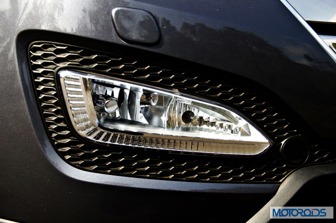 The inwards tapering, sharply styled headlamps feature Xenon tech along with LED positioning lights. The complex-design bumper comprises of several element. The body coloured bumper has a huge inlay of a black colored mesh in its central part. This element features a slender shape on the central part and gets wider towards the ends to house the inwards tapering fog-lamps. The fog-lamps are lined with LEDs and have the ability to swivel with the steering to boost visibility in inclement weather.