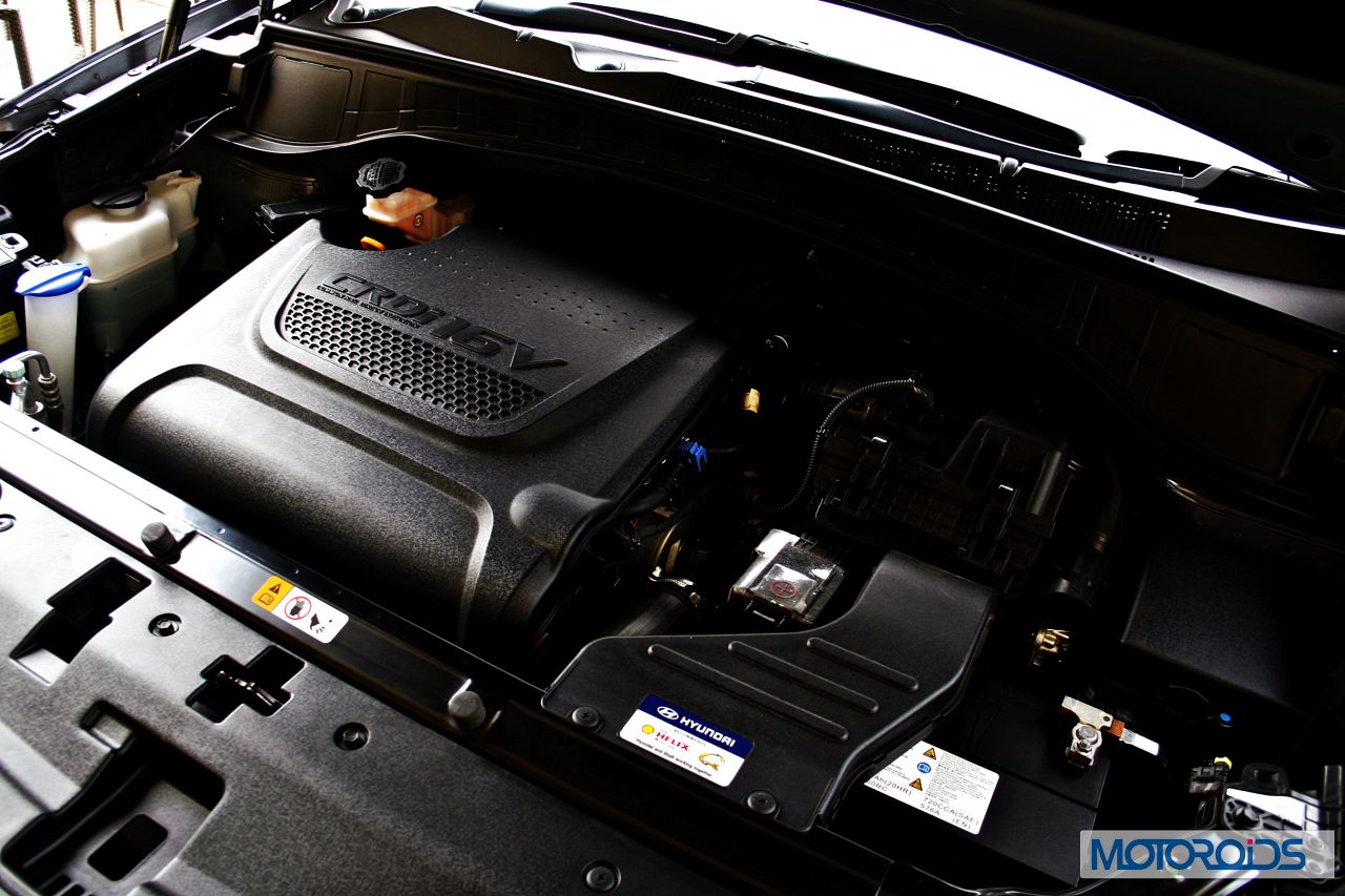 We found the engine uncannily silent below the 2000rpm mark. While cruising in higher gears at 100kmph or thereabouts, there is hardly any engine noise filtering into the cabin. The 2.2 CRDi impresses with its low rpm smoothness and hushed behavior. It gets a little noisy as it approaches the 3000 rpm mark and beyond though. The engine, with its strong mid range torque prefers spinning at ease in the sub 3000 rpm region. It has enough meat there to take on almost all real world scenarios with ease. It doesn’t much appreciate being hustled though.